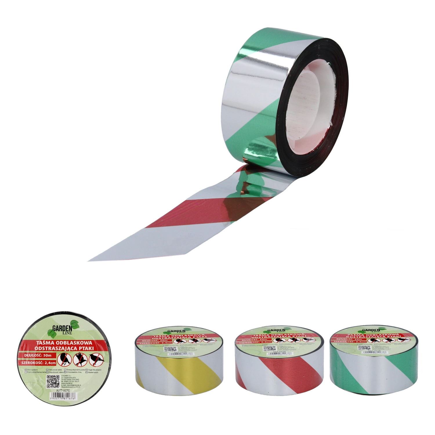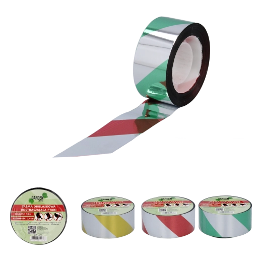Praktische reflecterende vogelverschrikker-tape beschermt tuinen, balkons en oogst. Dankzij het reflecterende oppervlak en de beweging in de wind voorkomt het effectief dat vogels neerstrijken op beschermde plekken. Eenvoudige installatie – hang het op of span het waar je bescherming nodig hebt. Geleverd in een mix van kleuren.
