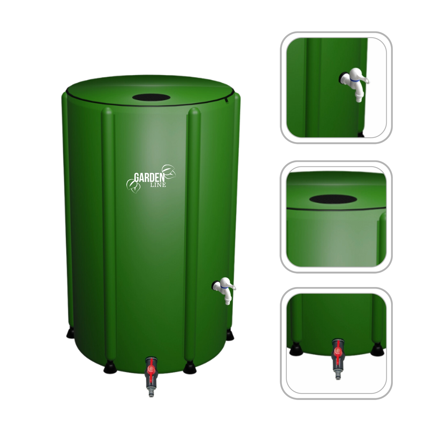 Het duurzame PVC 1000D-materiaal met verstevigingen is bestand tegen regen, zon en vorst. Het ritsdeksel voorkomt dat bladeren naar binnen vallen, terwijl geïntegreerde gaasjes kleine verontreinigingen opvangen. Wanneer niet nodig, vouwt u de ton eenvoudig op en bergt u hem op.