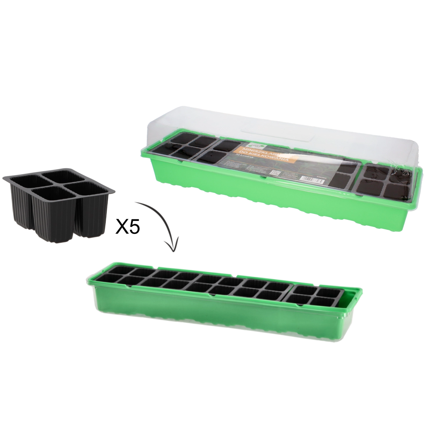 De gesegmenteerde tray met 20 cellen maakt het mogelijk om zaaiplannen te maken, rassen te scheiden en eenvoudig te verplanten zonder wortelschade.