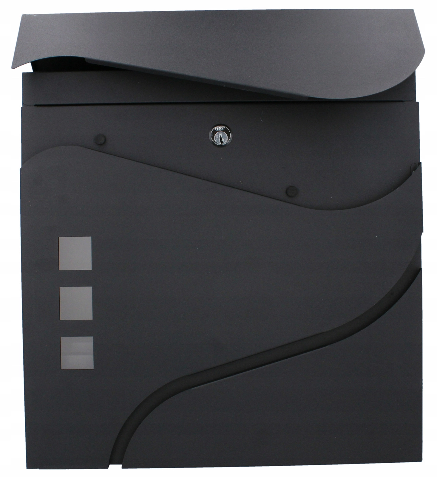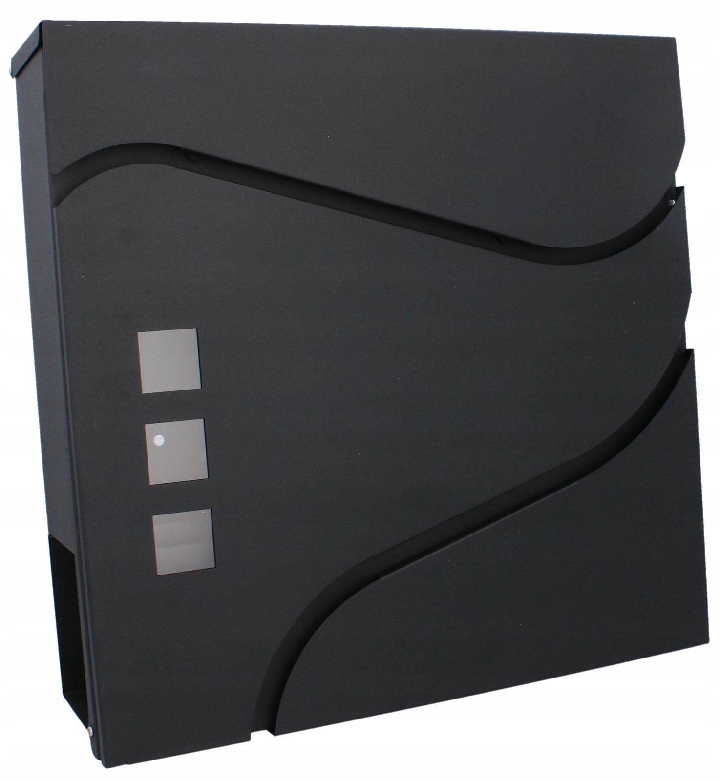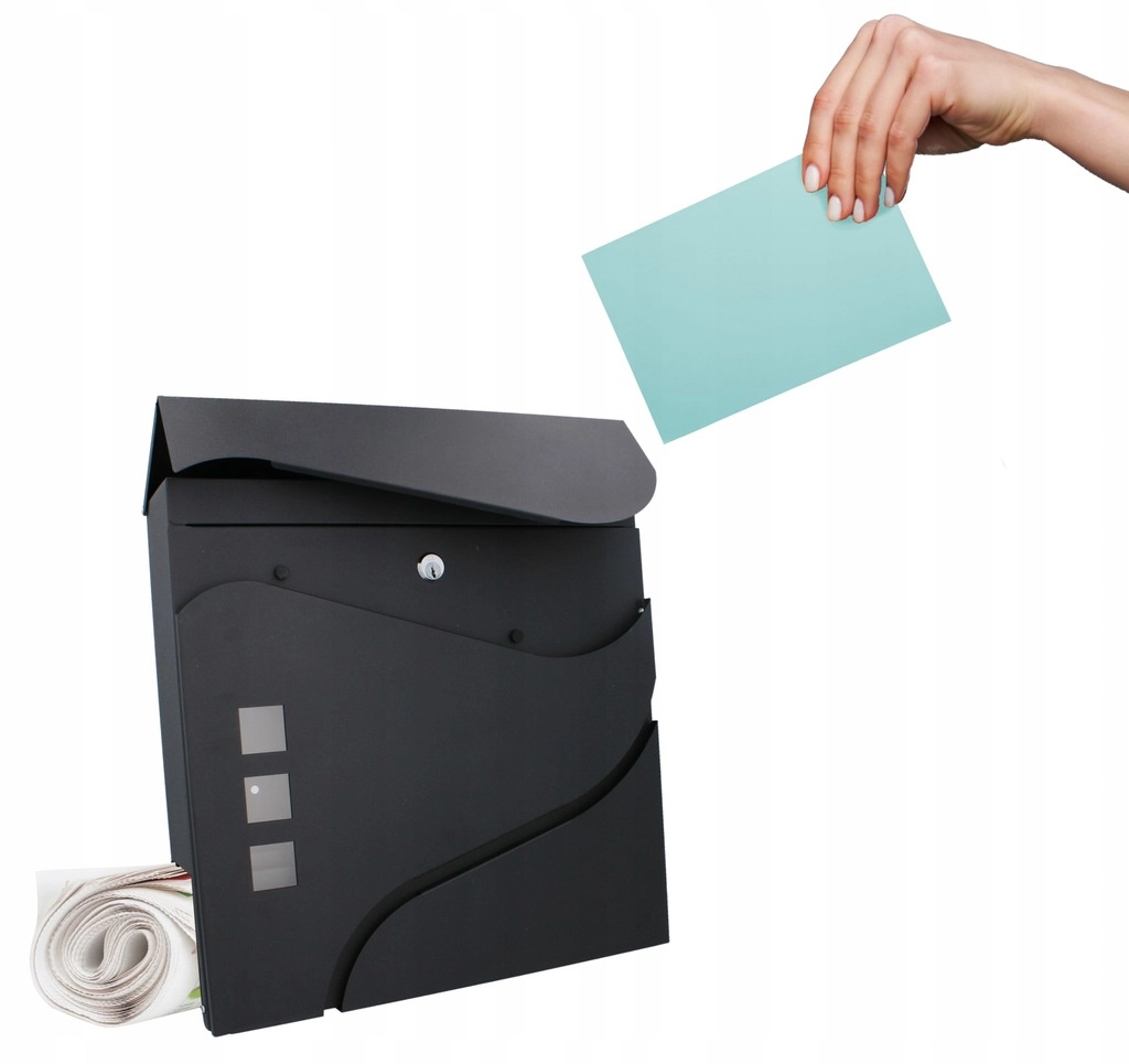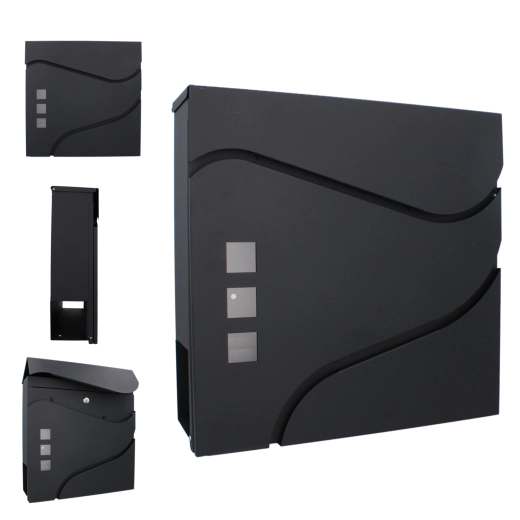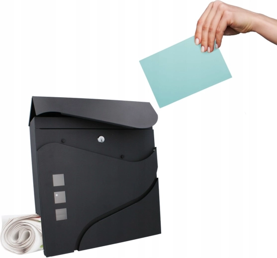 Het elegante, minimalistische design met zachte lijnen en drie venstertjes past perfect bij moderne gevels. Een praktische zij- of onderliggende krantenrol (afhankelijk van de variant) maakt gescheiden opslag van drukwerk mogelijk. Wandmontage gaat snel dankzij de voorgeboorde gaten.