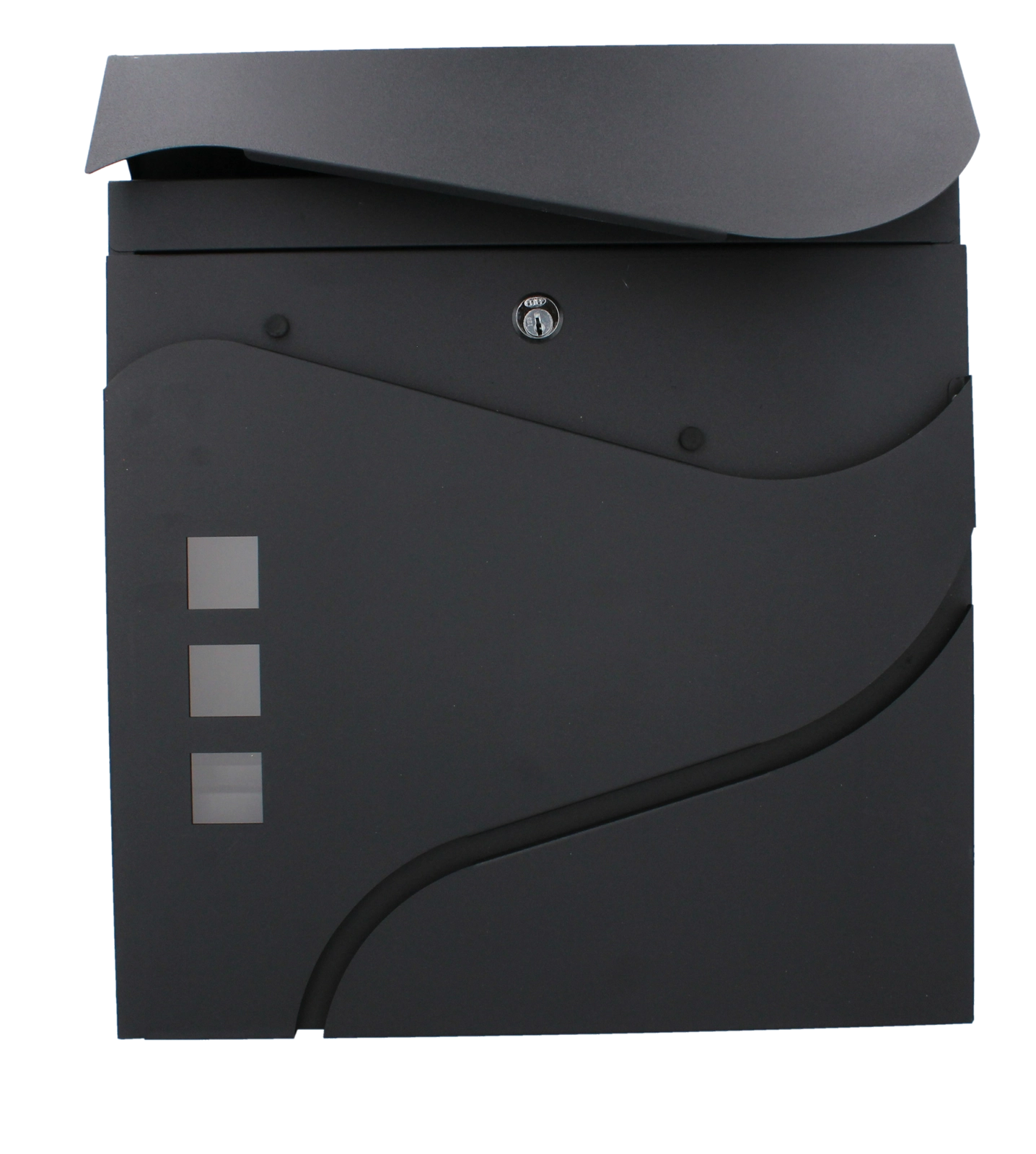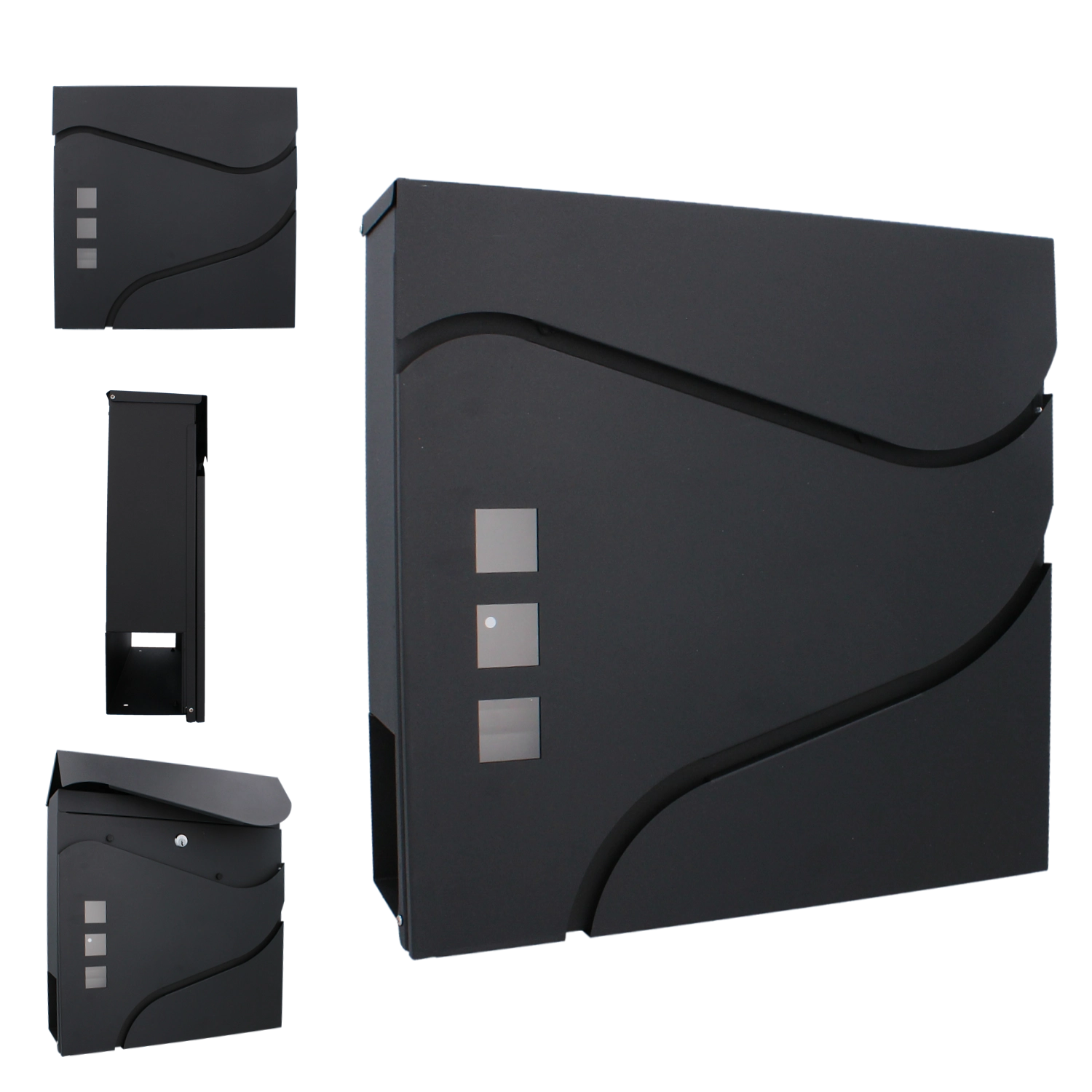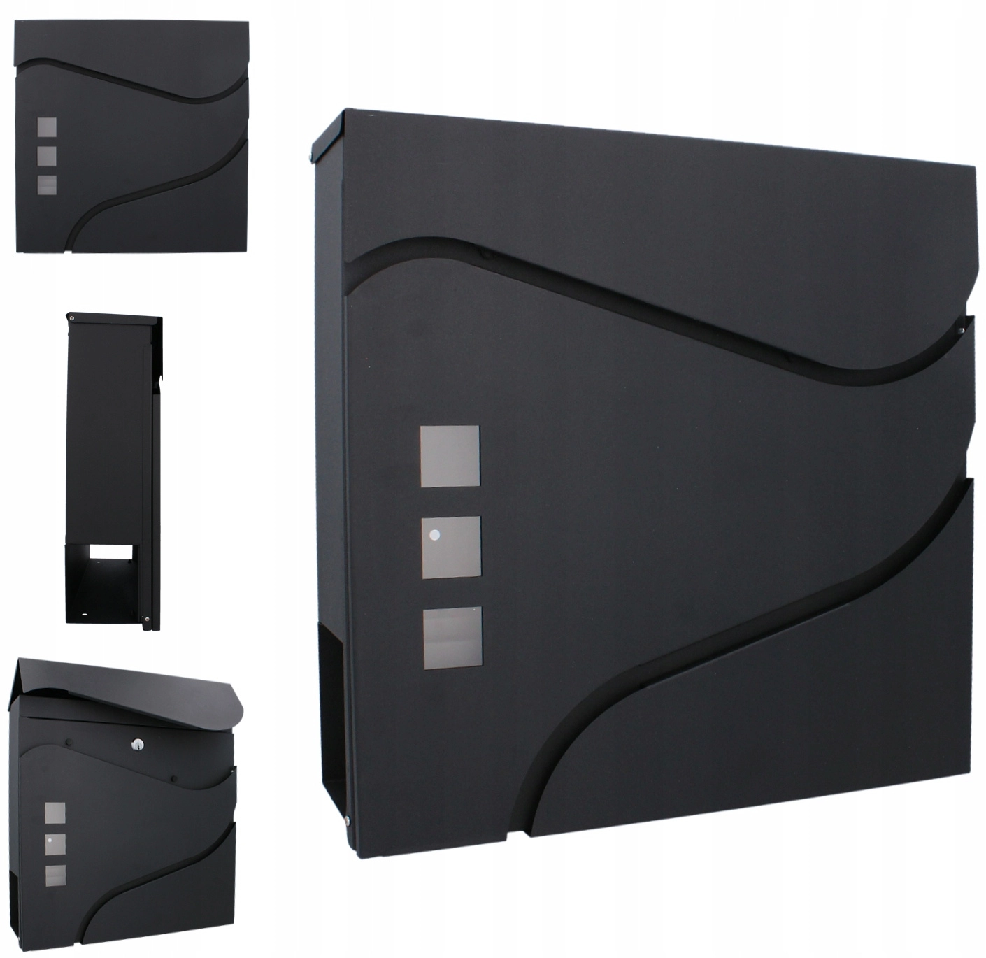 Het elegante, minimalistische design met zachte lijnen en drie venstertjes past perfect bij moderne gevels. Een praktische zij- of onderliggende krantenrol (afhankelijk van de variant) maakt gescheiden opslag van drukwerk mogelijk. Wandmontage gaat snel dankzij de voorgeboorde gaten.