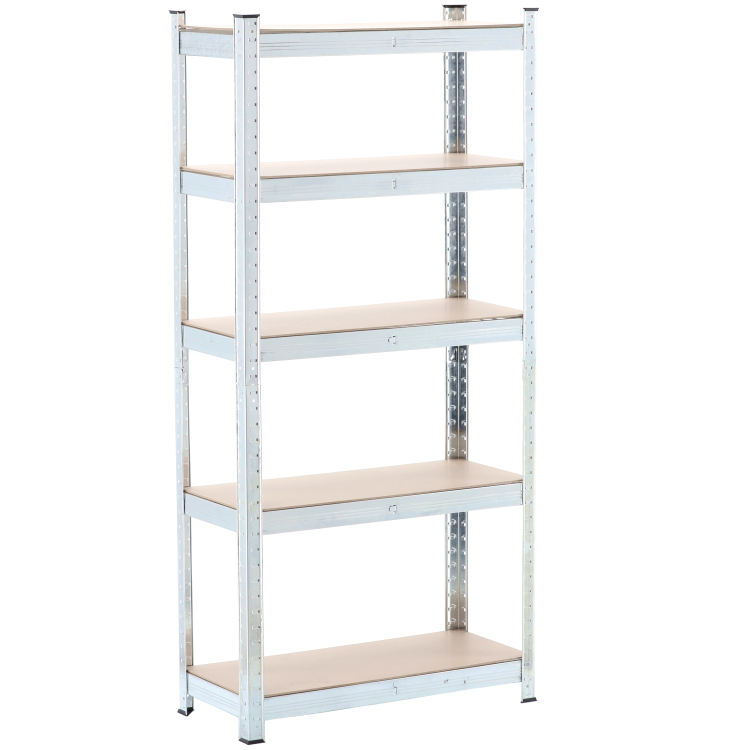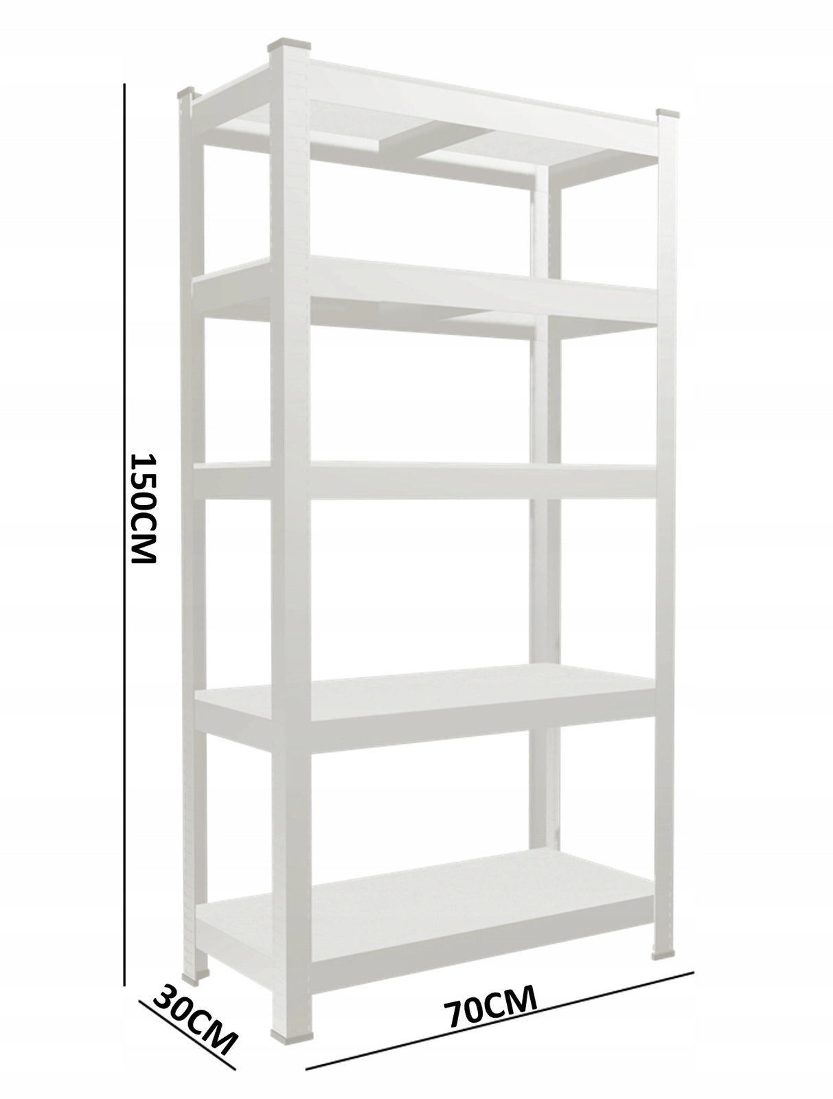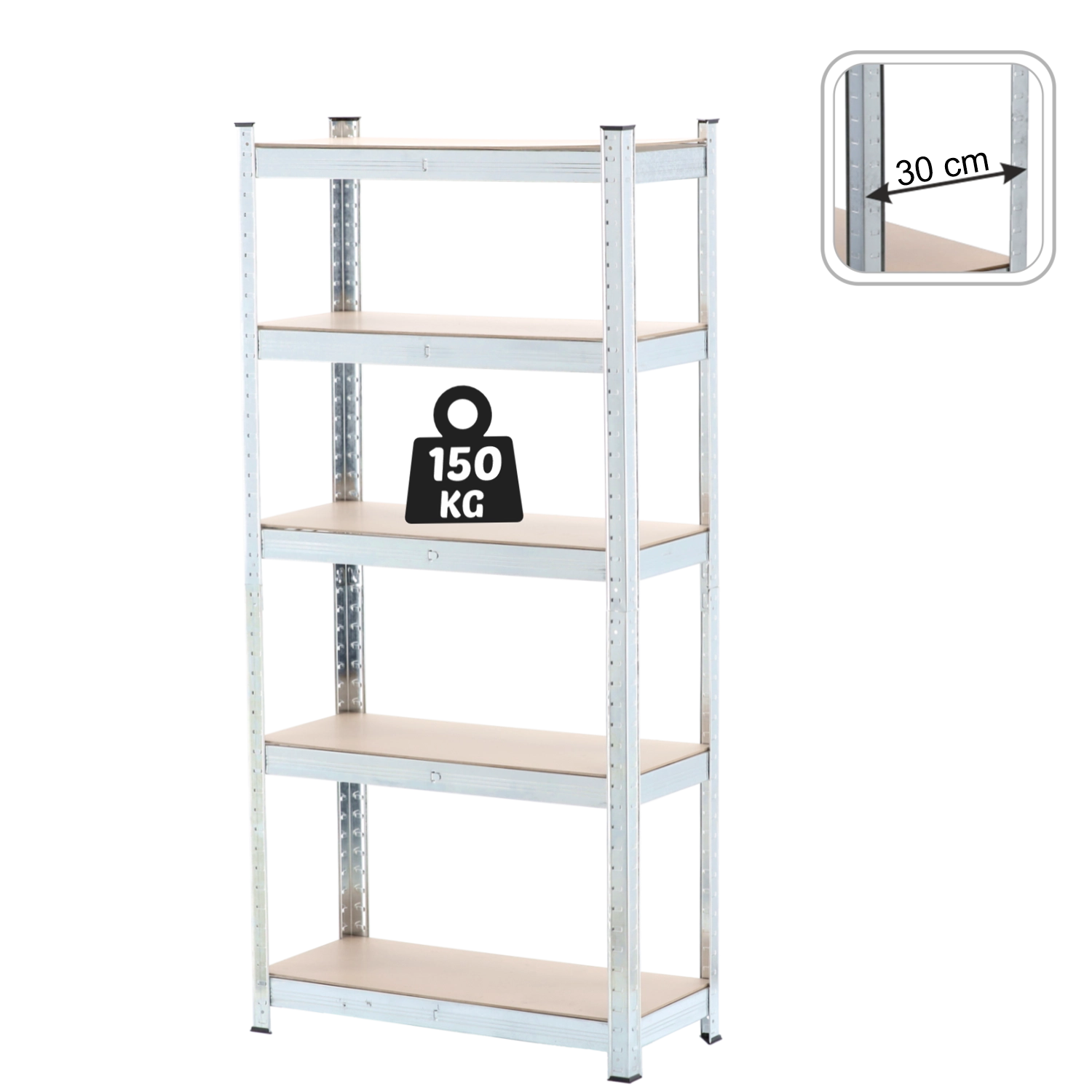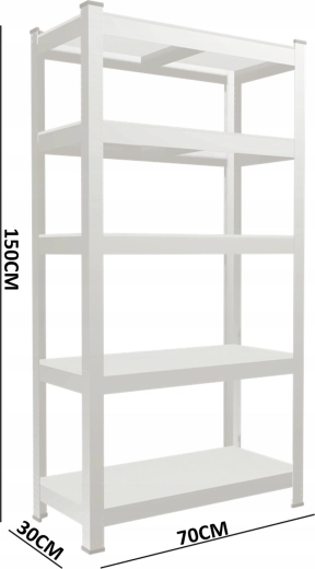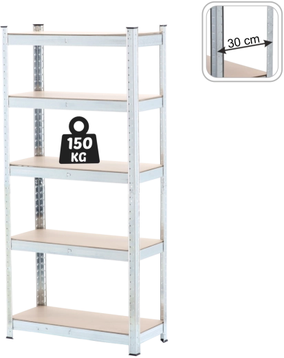 Praktisch metalen rek met 5 niveaus, ontworpen voor maximale stabiliteit en een lange levensduur. De massieve stalen constructie in combinatie met slijtvaste MDF-planken zorgt voor betrouwbare opslag, ook van zwaardere voorwerpen, waarbij elke plank tot 150 kg draagt bij gelijkmatige belasting. De slanke diepte van 30 cm bespaart ruimte en biedt toch voldoende opslagoppervlak.