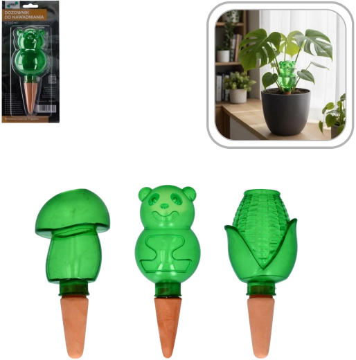 Dankzij de decoratieve vormen – beertje (ca. 160 ml), maïskolf (ca. 124 ml) en paddenstoel (ca. 106 ml) – is de dispenser niet alleen een functionele hulp, maar ook een stijlvolle toevoeging aan elke bloempot. Ideaal voor vakanties, weekenden weg of voor drukke plantenliefhebbers.
