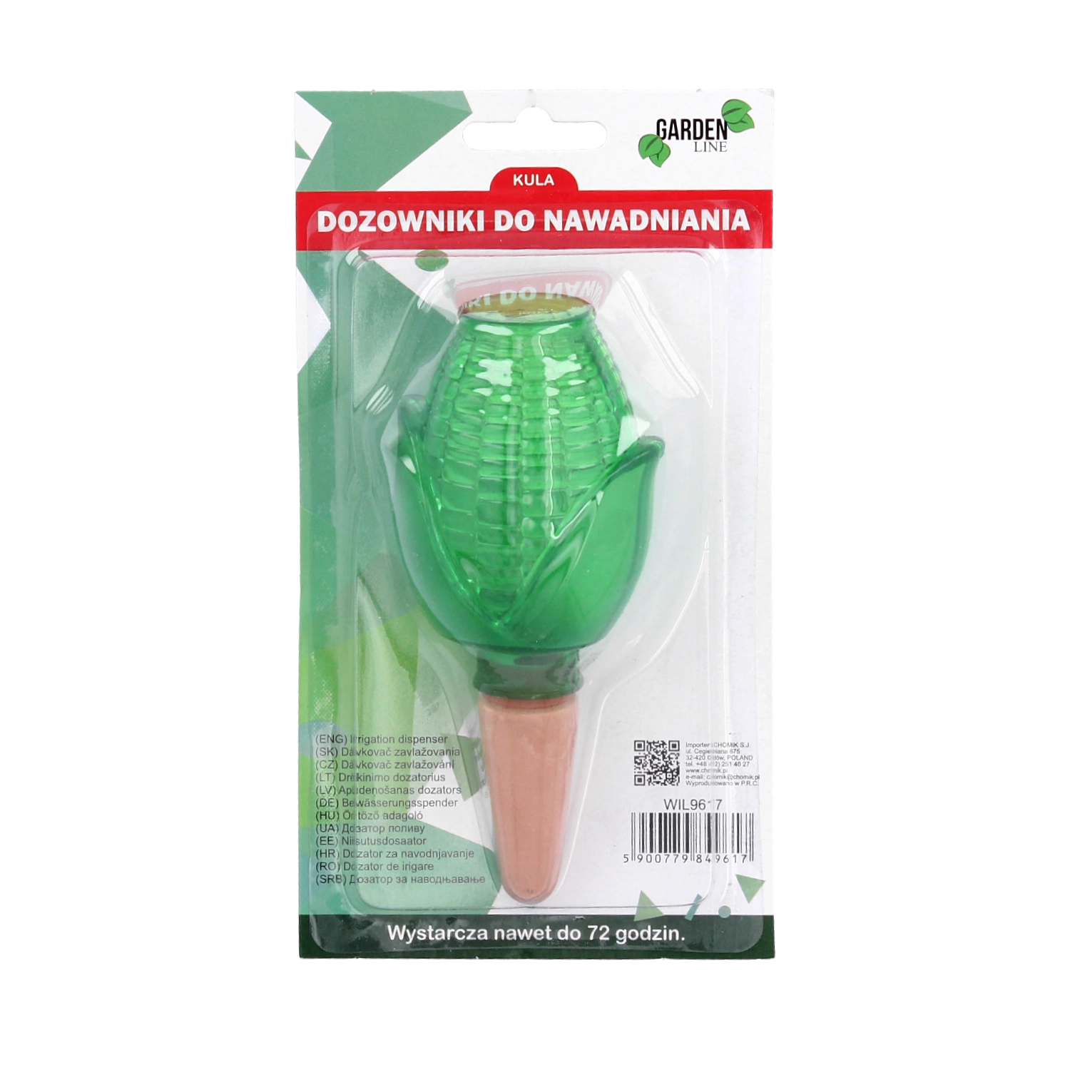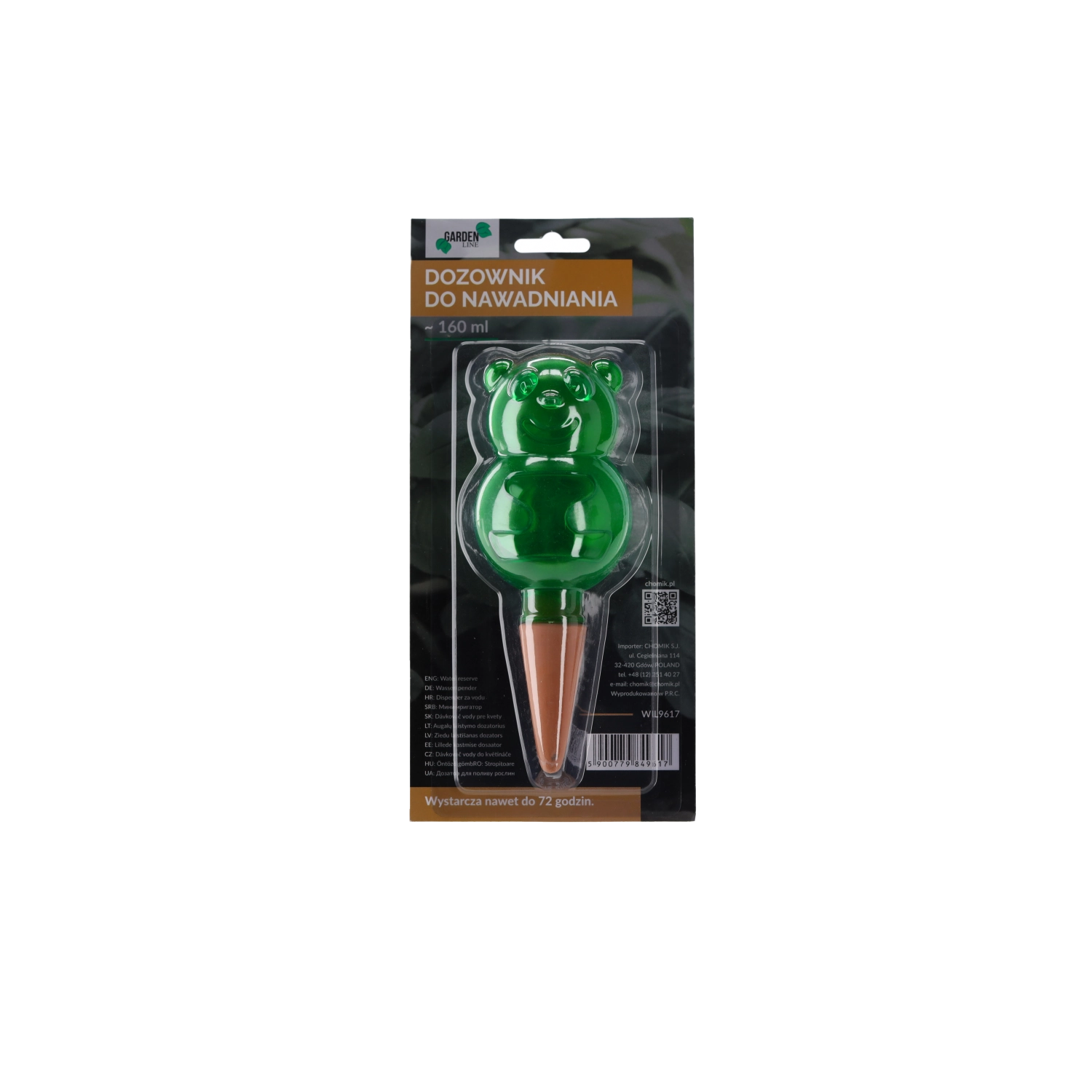 Een praktische, decoratieve waterdispenser voor kamer- en balkonplanten die tijdens uw afwezigheid zorgt voor regelmatige bewatering tot wel 72 uur. Het elegante ontwerp in de vorm van een beertje, maïskolf of paddenstoel geeft uw potplanten flair en zorgt tegelijk voor een geleidelijke afgifte van water direct bij de wortels. Eenvoudig in gebruik, met een transparant reservoir voor niveaucontrole en verschillende volumes voor verschillende plantgroottes.