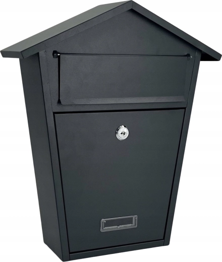 Stijlvolle wandbrievenbus FINCH in elegant antraciet combineert een duurzame metalen constructie, een scharnierende beschermklep tegen regen en sluiting met 2 sleutels voor veilige opslag van post. Compacte afmetingen 38 × 32 × 10,5 cm en eenvoudige montage maken het een ideale keuze voor zowel huis als kantoor.