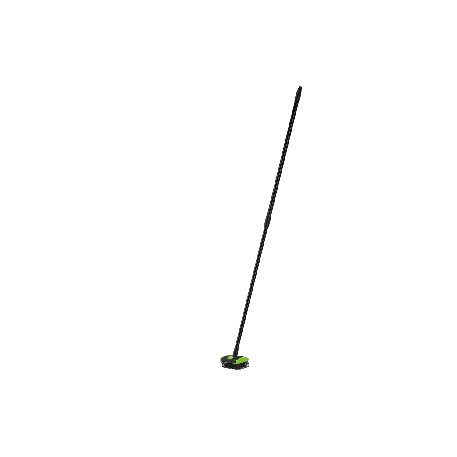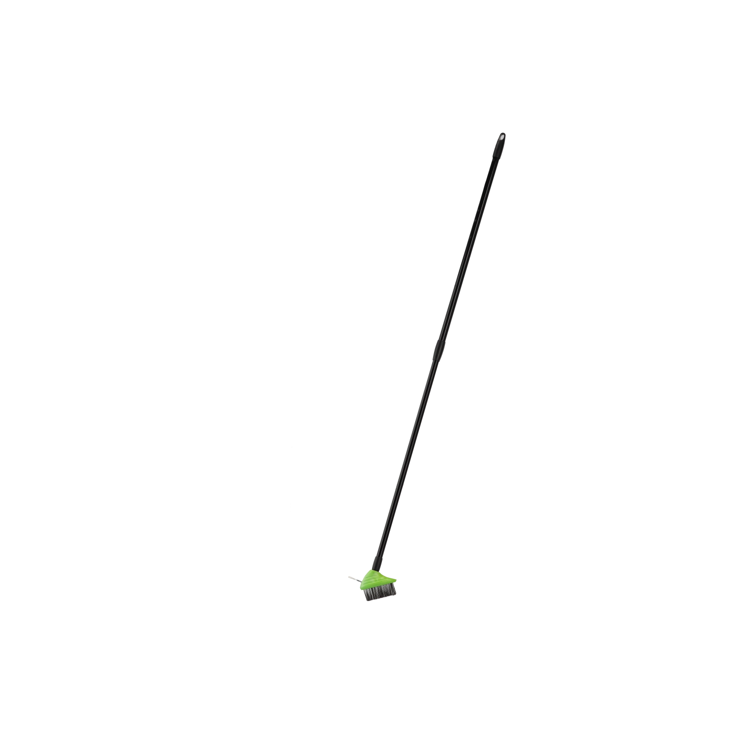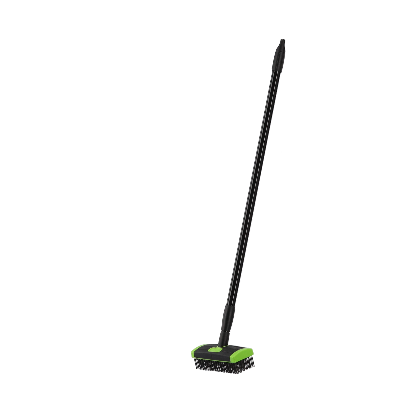 De metalen telescoopsteel met een lengte tot 140 cm zorgt voor bereik zonder onnodig bukken. Reinig trottoirs en terrassen in een rechte, staande houding.