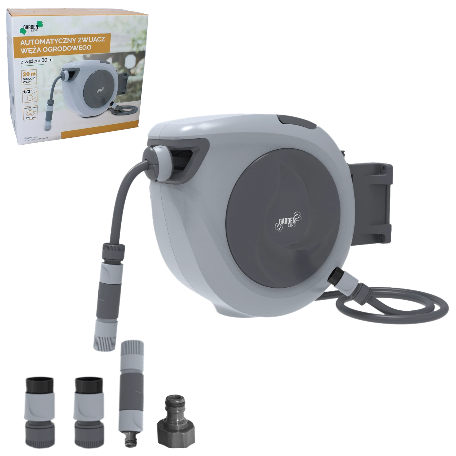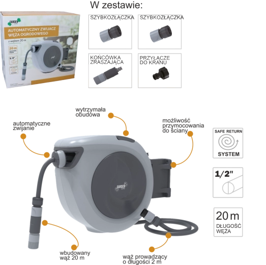 Maak het werken in de tuin makkelijker met de automatische slangenhaspel, die zorgt voor snel en netjes opbergen na elke bewatering. Dankzij de slow-retract-functie en de veilige slangingang voorkomt u rukken en knopen. De draaibare muurbeugel garandeert een comfortabele reikwijdte over het hele tuinoppervlak.