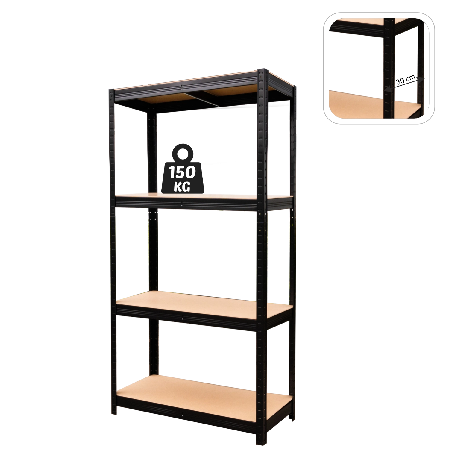 Het rek is perfect voor garages, werkplaatsen, kelders, kantoren en voorraadkamers thuis. Verstevigingen onder elke plank verhogen de stabiliteit en maken een veilige belasting tot 150 kg bij gelijkmatige verdeling mogelijk. De open constructie biedt overzichtelijke toegang van drie zijden en maakt snelle organisatie van gereedschap, bakken en voorraden mogelijk.