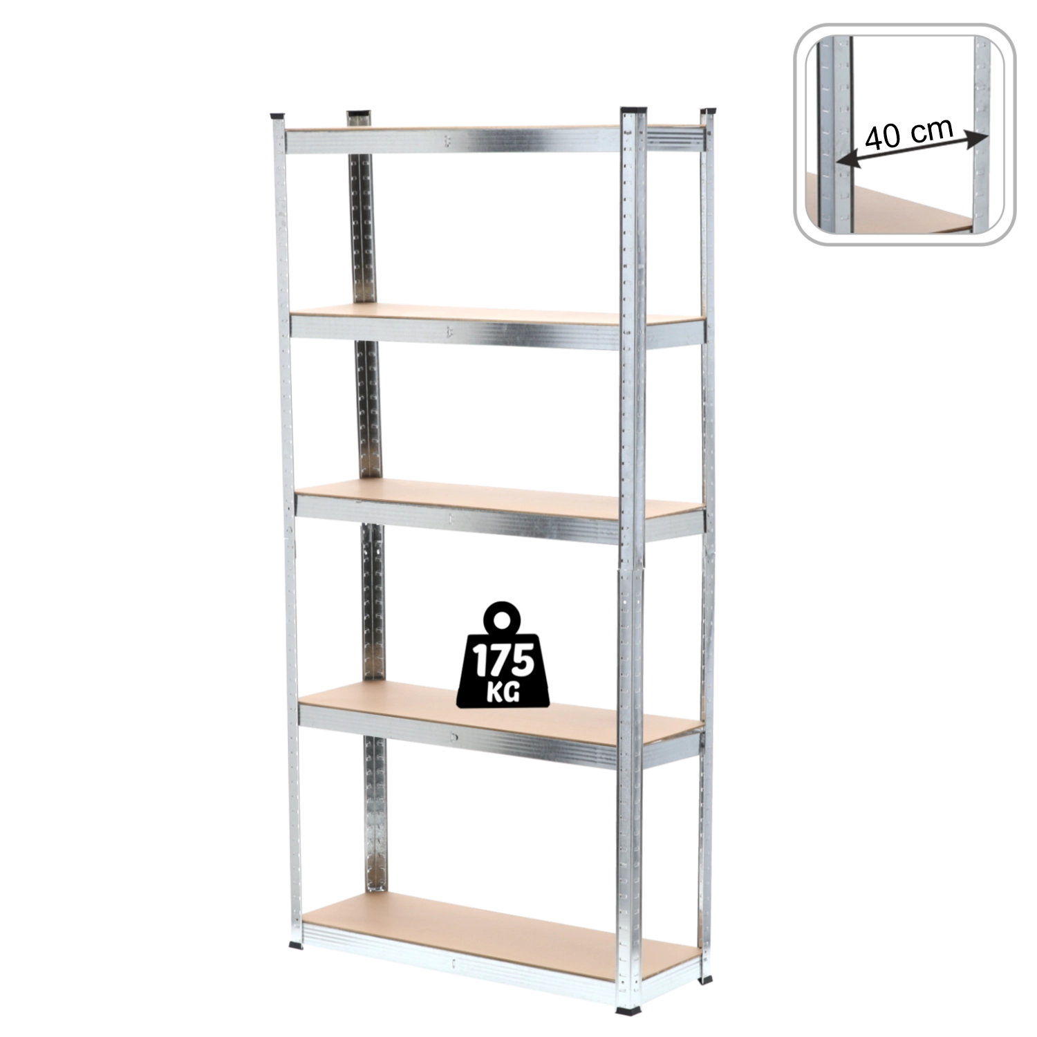 Dankzij het draagvermogen van 175 kg per legbord (bij gelijkmatige verdeling) kan de stelling ook zwaardere lasten aan en draagt in totaal tot 875 kg. De open constructie garandeert gemakkelijke toegang van alle kanten en overzichtelijke opslag. De montage is snel en intuïtief, zodat je de stelling in korte tijd gebruiksklaar hebt.