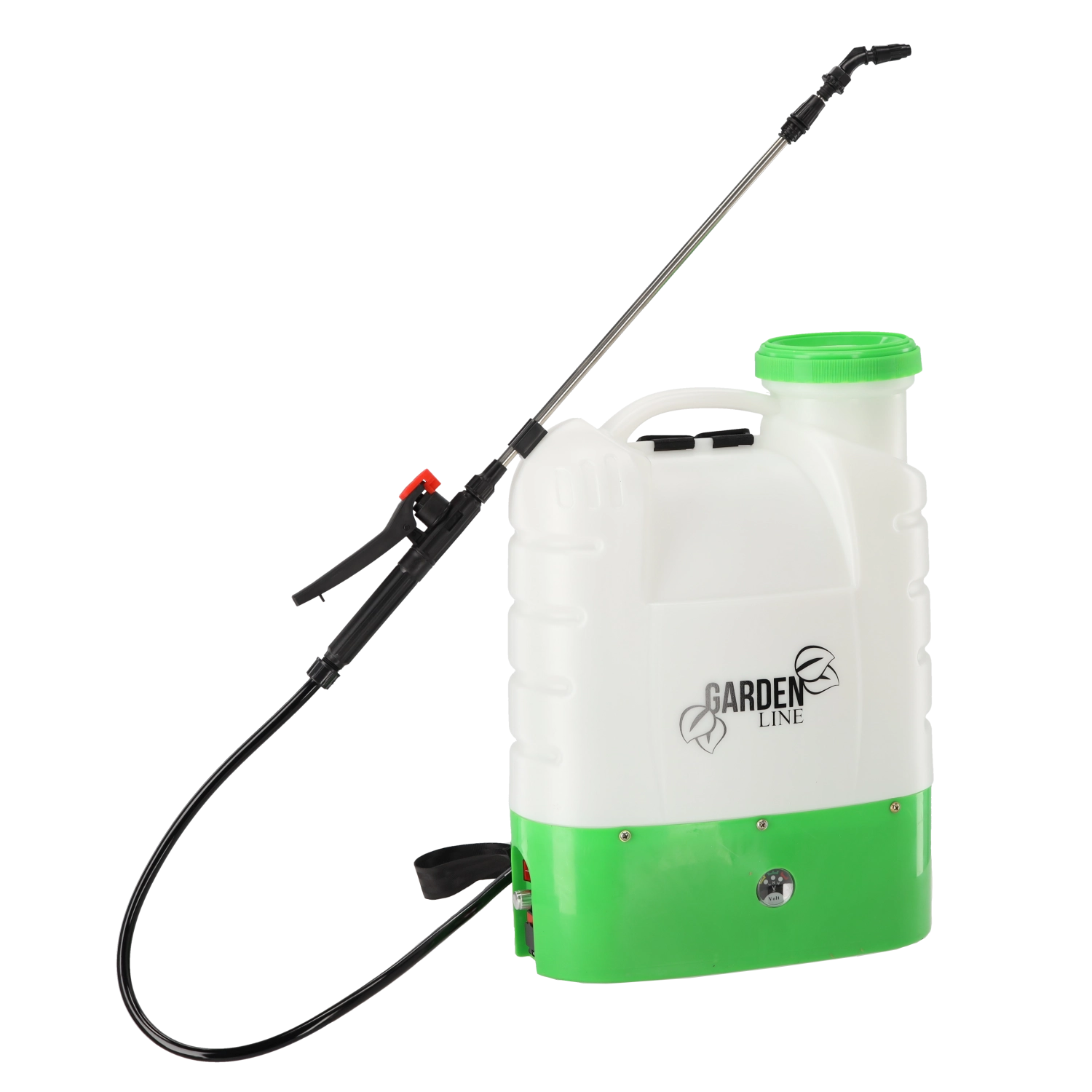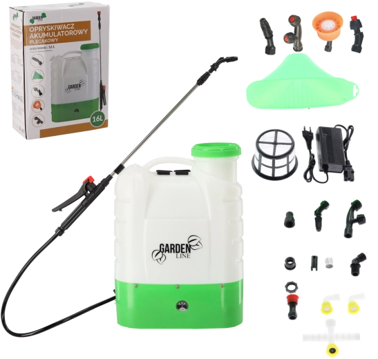 Krachtige accu-rugspuit met een inhoud van 16 l voor comfortabel en nauwkeurig onderhoud van tuinen, boomgaarden en parken. Biedt lange gebruiksduur, ergonomisch draagcomfort en traploze drukregeling voor een gelijkmatige nevel. De grote vulopening met zeef, meerdere verwisselbare sproeikoppen en eenvoudige bediening maken hem tot een betrouwbare hulp voor het toedienen van meststoffen, pesticiden en bladmest.