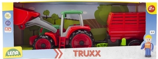 We presenteren u Lena Truxx tractor met aanhanger, het ideale speelgoed voor kleine boeren. Deze plastic tractor valt op door zijn robuuste ontwerp in rood en groen, aangevuld met een functionele laadbak en afneembare aanhanger. In de cabine van de tractor bevindt zich een klein figuurtje van de bestuurder, dat bijdraagt aan de realistische beleving van het spel.