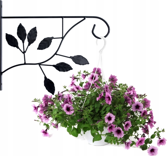Elegante metalen wandhouder voor hangbloempotten en decoraties met bladmotief. Dankzij de stevige constructie, corrosiebestendigheid en eenvoudige montage is hij ideaal voor balkon, terras, tuin en interieur. Perfect voor hangbloempotten, lantaarns, vogelvoeders of windgongen en geeft de ruimte een stijlvolle, minimalistische touch.