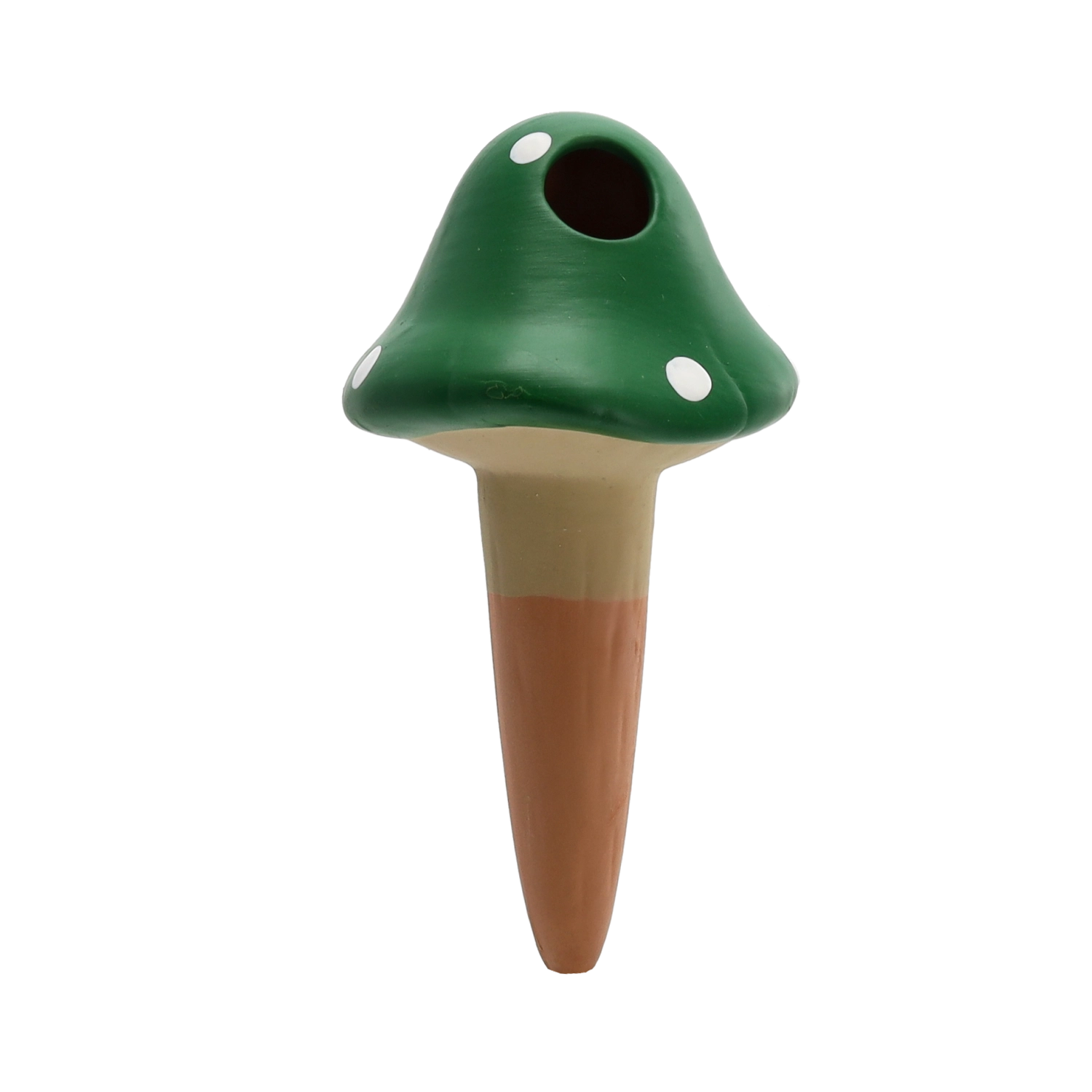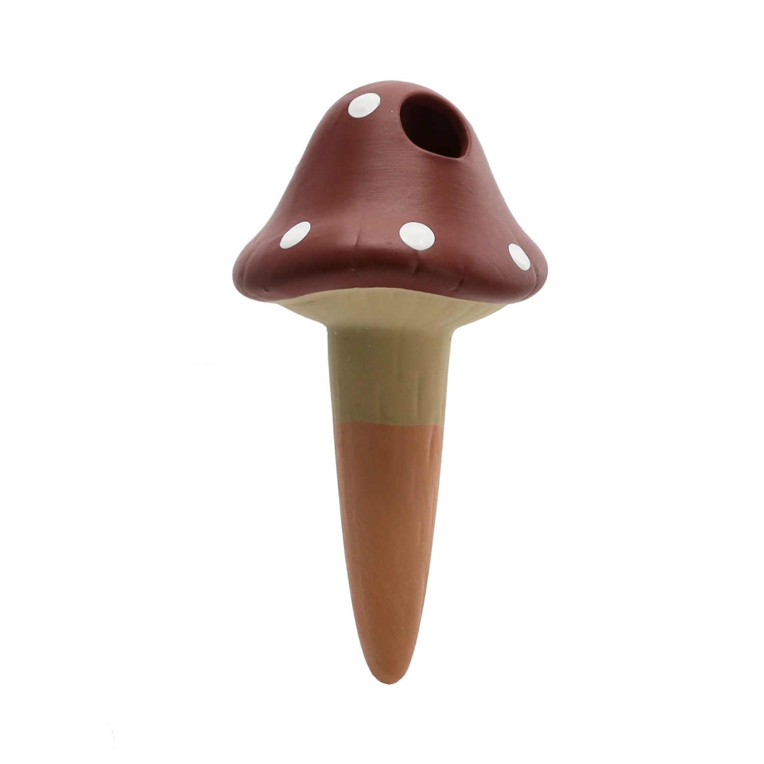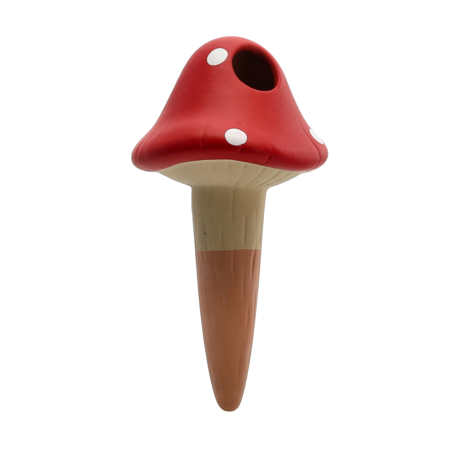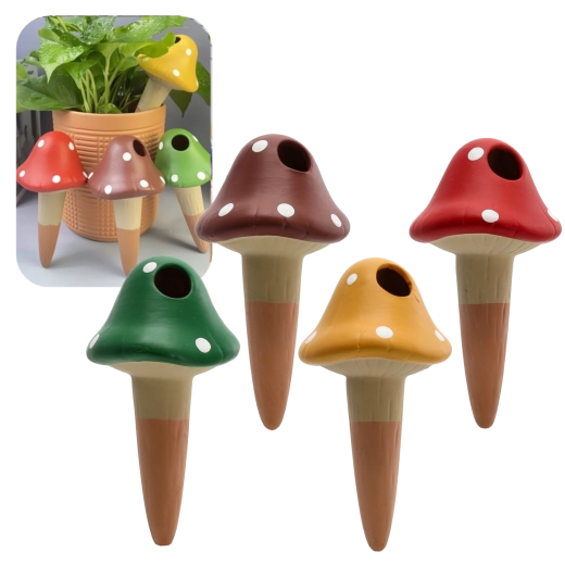 Praktische zelfbewaterende pin in de vorm van een vliegenzwam van duurzaam keramiek zorgt voor een constante toevoer van vocht rechtstreeks bij de wortels. Door de langzame afgifte van water helpt hij zowel overbewatering als uitdroging van het substraat te voorkomen en biedt hij je planten stabiele omstandigheden wanneer je op vakantie bent of simpelweg geen tijd hebt voor regelmatig water geven.