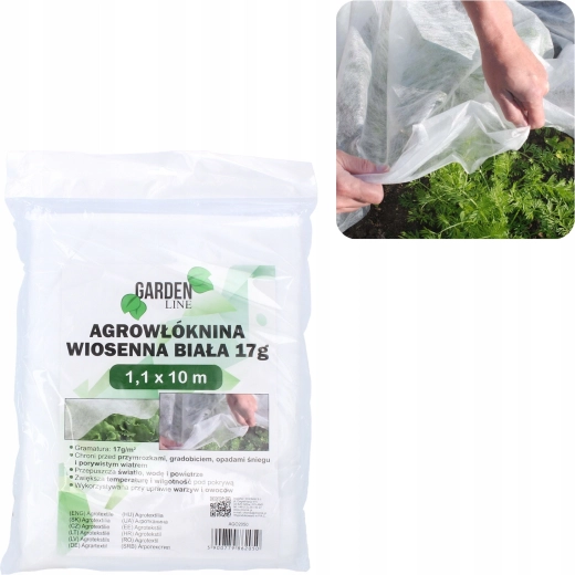 Het materiaal met een laag gramgewicht van 17 g/m² is licht en zacht voor planten – het breekt of vervormt ze niet. UV-stabilisatie verlengt de levensduur en de weerstand tegen zonnestraling. Het agrotextiel bevestigt u eenvoudig met pennen, stenen of aarde en u kunt het op elk moment optillen voor bewatering of oogst.