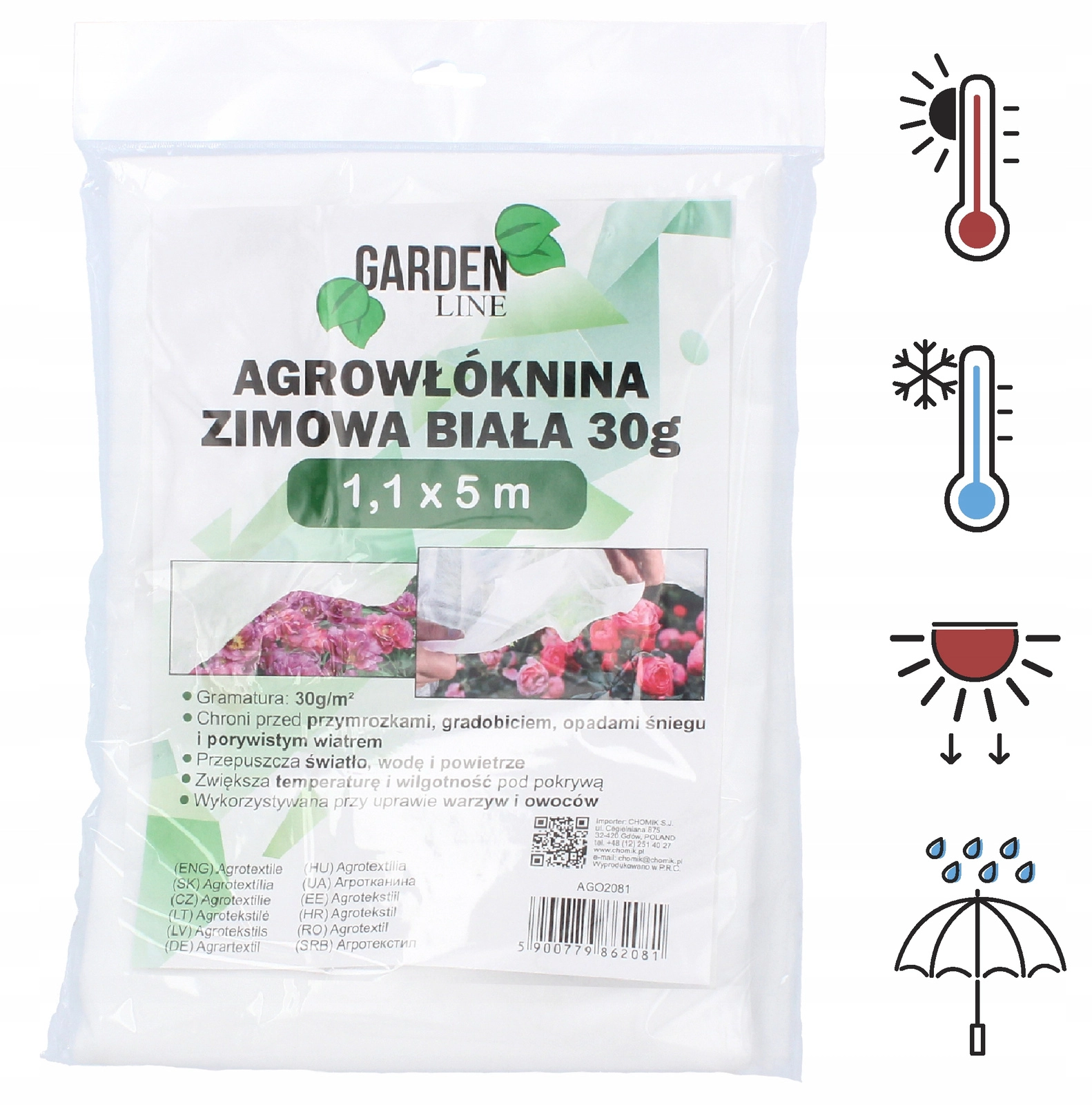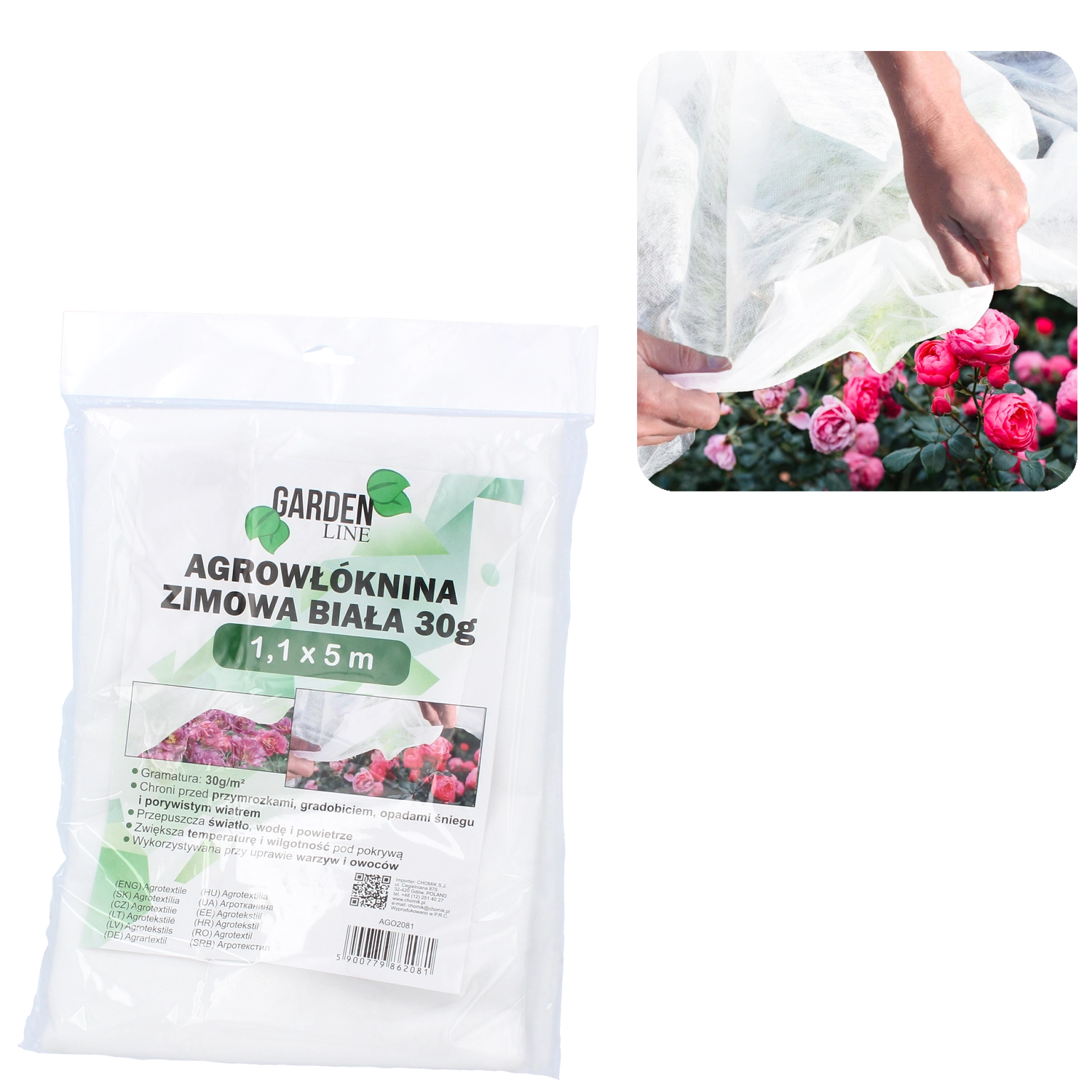 Praktisch beschermend agrotextiel voor winter en vroeg voorjaar beschermt planten betrouwbaar tegen kou, sneeuw, wind en hagel. Dankzij een gramgewicht van 30 g/m² creëert het een stabiel microklimaat, verhoogt het de temperatuur en luchtvochtigheid onder de afdekking, is UV-bestendig en laat licht, water en lucht door voor een gezonde groei.