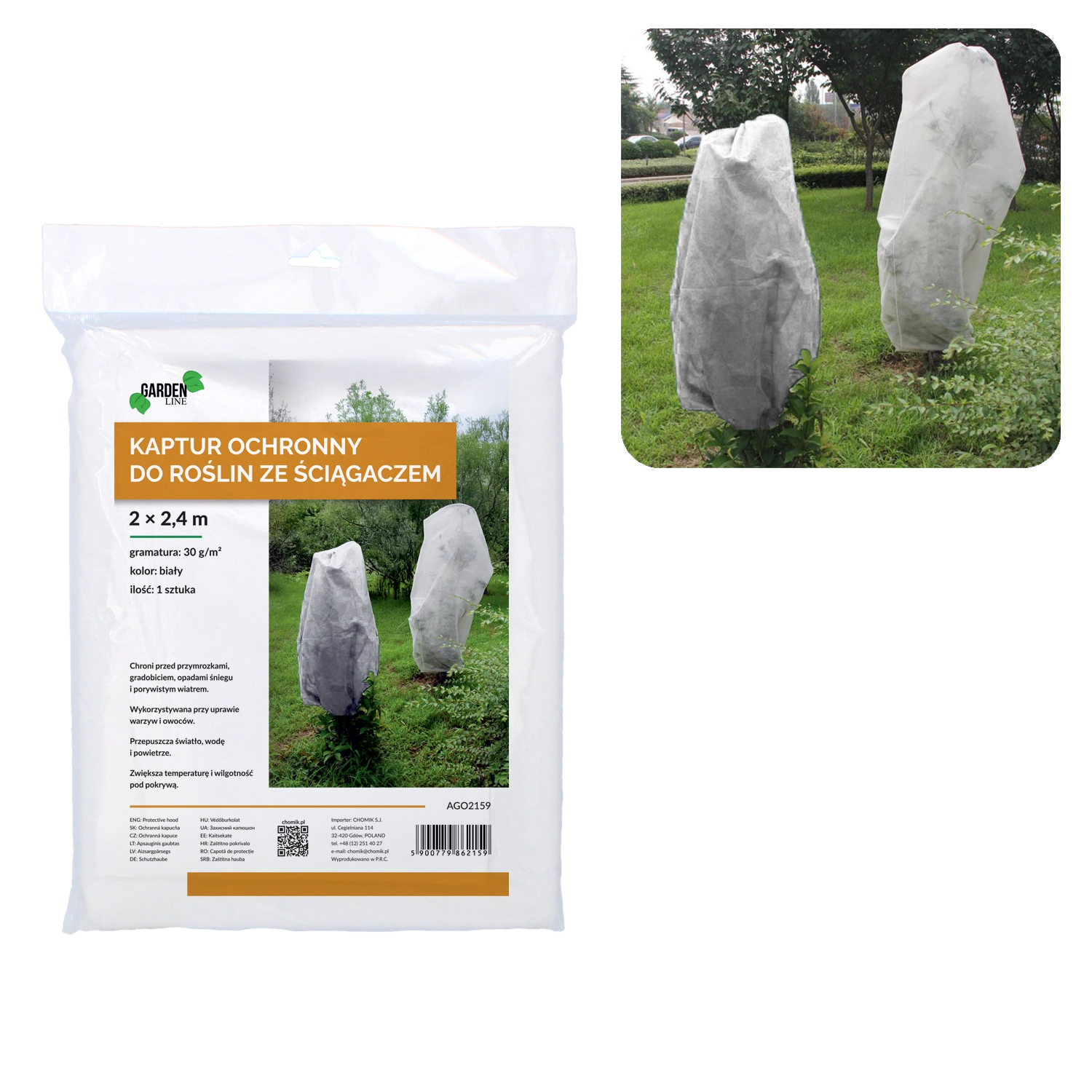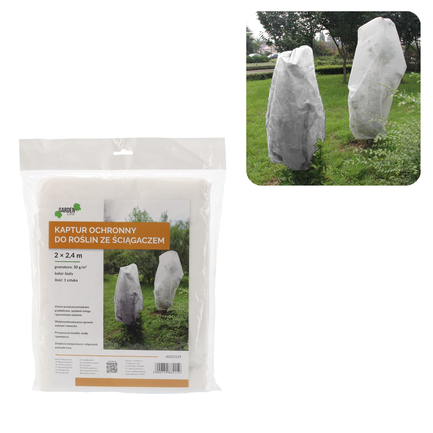Beschermende winterhoes voor planten 2 × 2,4 m met trekkoord, 30 g, wit