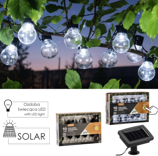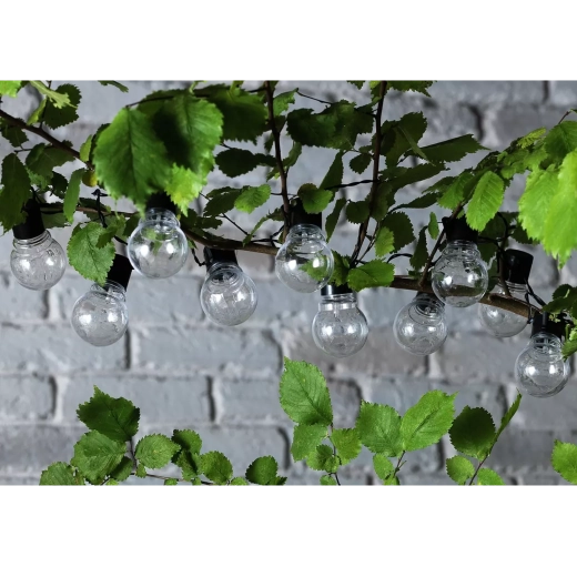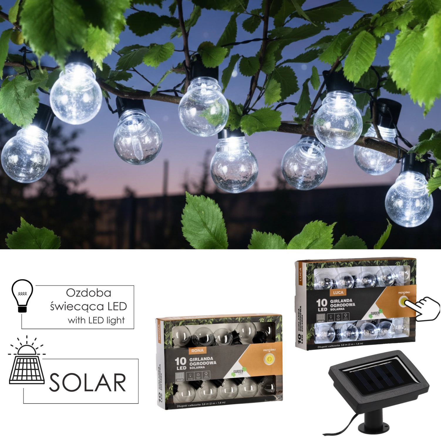 De zonnenguirlande LUCA met tien LED-lampen is de ideale decoratie voor gezellige avonden op balkon, terras en in de tuin. Het paneel verzamelt overdag zonne-energie en zet die ’s avonds om in sfeervolle verlichting, zonder kabels en zonder hogere energiekosten. De stijlvolle koud witte lichtkleur past bij zowel modern als klassiek design.