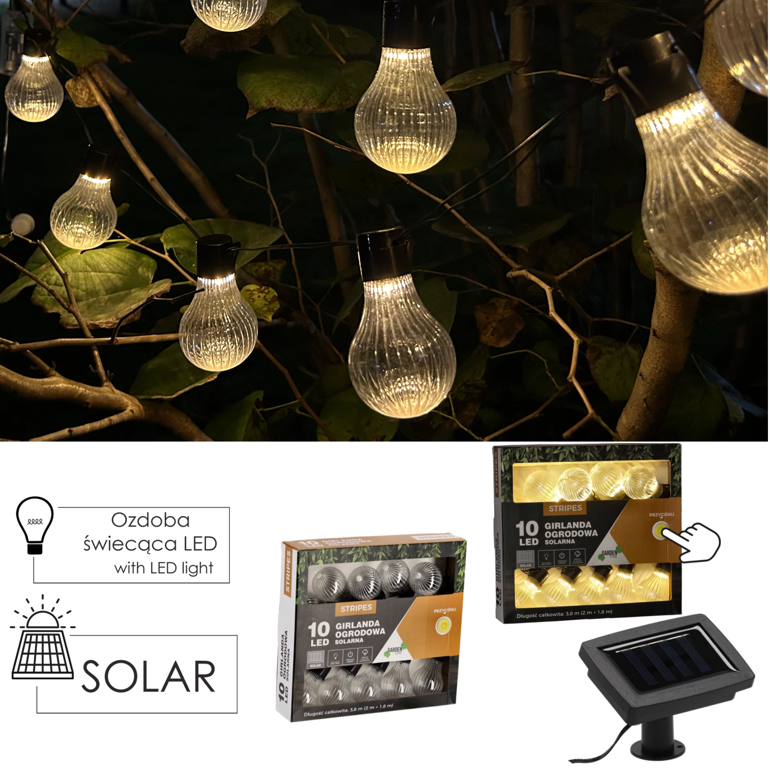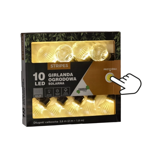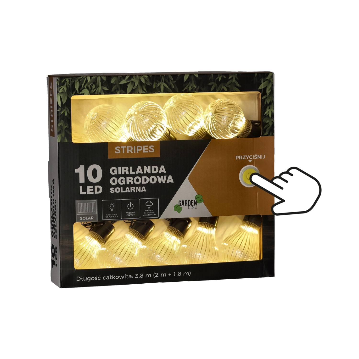 Geef je balkon, terras en tuin een betoverende sfeer met de zonne-energieketen STRIPES. Tien LED-lampjes in warm wit zorgen voor gezellig licht zonder stopcontact – de energie komt van het ingebouwde zonnepaneel. Dankzij de IP44-bescherming is hij bestand tegen buitenomstandigheden en biedt hij vele avonden aangename, sfeervolle verlichting.