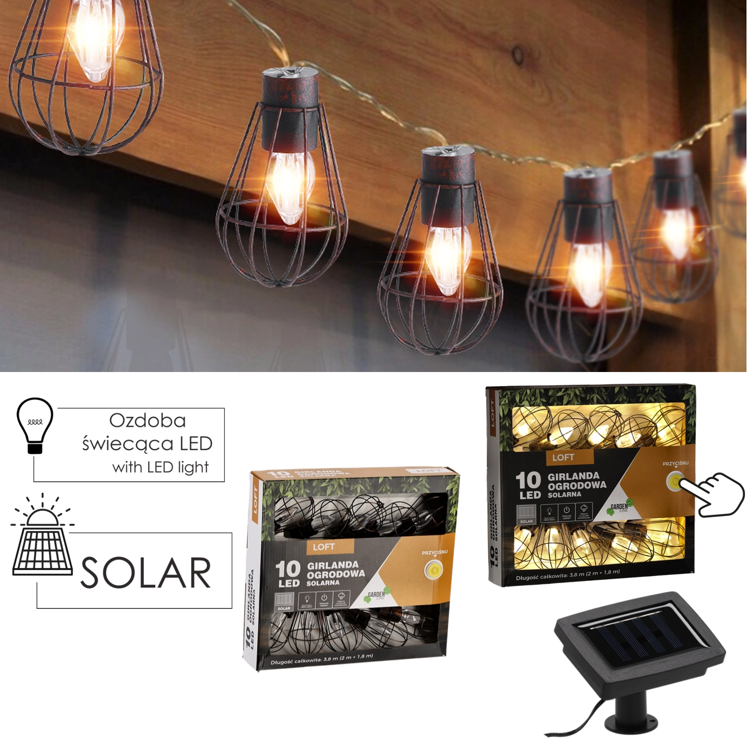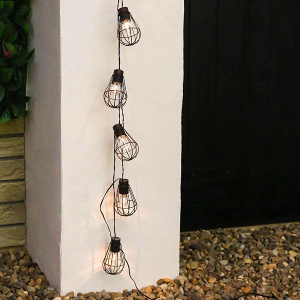 De stijlvolle zonne-energieslinger in loftstijl maakt avonden op het terras, onder de pergola en op het balkon extra sfeervol. Metalen kooi-kappen en warmwitte LED’s creëren een aangenaam ambient licht dat past bij ontspanning én samen borrelen. Zonnestroom bespaart energie en bekabeling – plaats het paneel in de zon en de lampjes gaan ’s avonds automatisch aan.