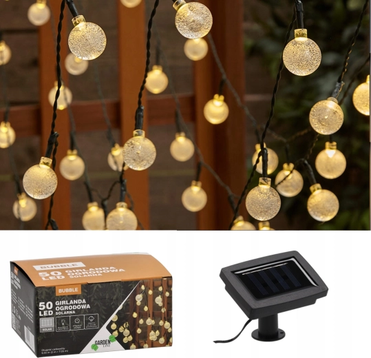 De zonne-girlande Bubble zorgt voor zachte en gelijkmatige verlichting voor knusse avonden buiten. Het geïntegreerde zonnepaneel slaat overdag energie op en geeft 's avonds prettig warm licht dat elke hoek van tuin, pergola of balkon accentueert.