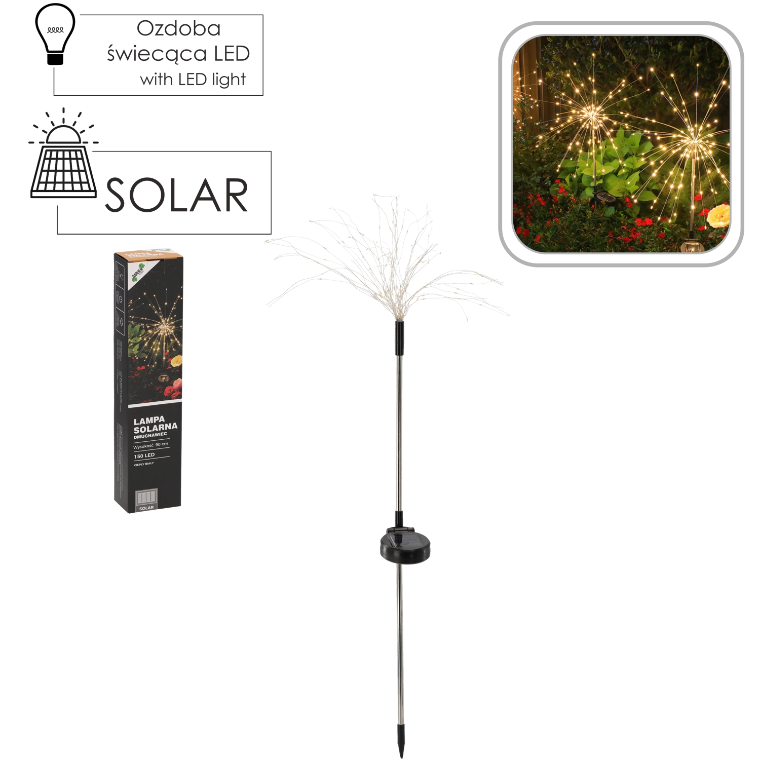 Elegante zonne-energietuinlamp in paardenbloemstijl verlicht paden, terrassen en bloemperken met aangenaam warm wit licht. Dankzij 150 LED’s op koperdraad ontstaat een sprankelend starburst-effect. Zonder kabels, gevoed door de zon, met IP44-bescherming voor gebruik buitenshuis.