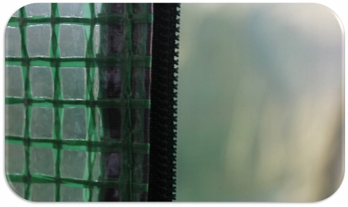 Sterke PE-folie ca. 140 g/m² met PP-versterkingsraster biedt lange levensduur, stabiliteit en bescherming tegen de zon dankzij het UV4-filter.