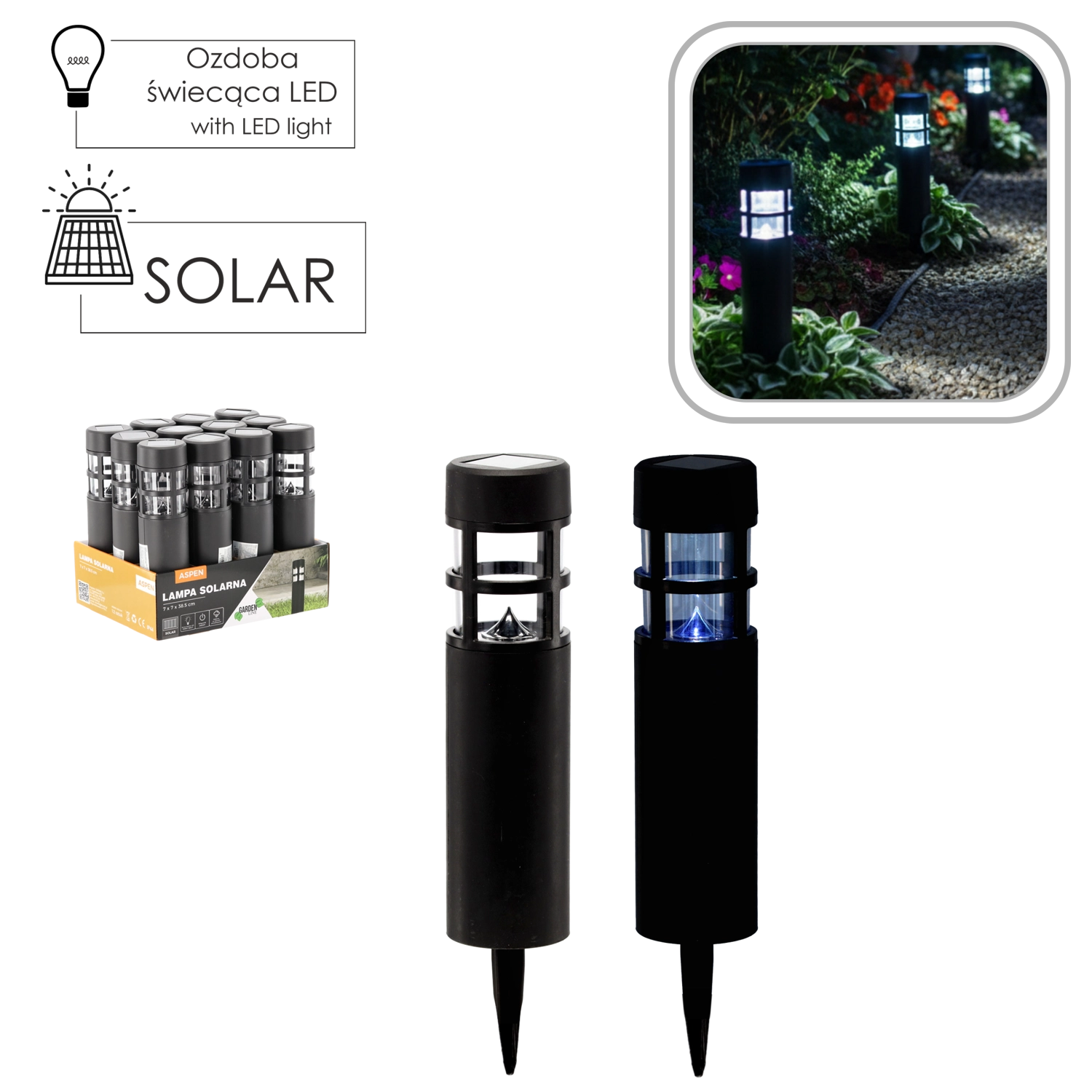 Creëer een veilige en stijlvolle nachtverlichting in de tuin met de ASPEN-zonnelamp. Dankzij het amorfe zonnepaneel laadt de lamp overdag op en gaat na zonsondergang automatisch branden met koel wit LED-licht. Het minimalistische zwarte design past bij zowel moderne als klassieke buitenruimtes.