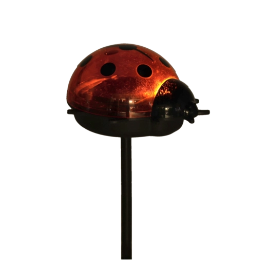 De schildpad, slak en het lieveheersbeestje met kleurrijke halftransparante “pantser”/schelpen geven elke beplanting een vrolijk accent en lichten deze ’s avonds zacht op met warm licht.