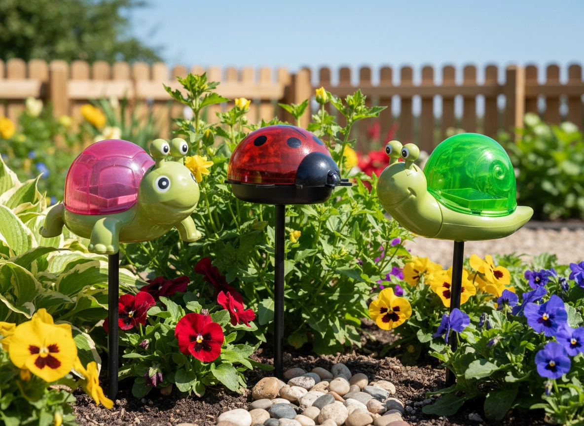 Deze decoratieve zonnelampen toveren elke border om tot een gezellig plekje. Steek ze eenvoudig in de grond: overdag laden ze op in de zon en ’s avonds schakelen ze automatisch in. Het speelse dierenontwerp geeft je tuin een persoonlijk tintje en biedt tegelijk subtiele oriëntatieverlichting.