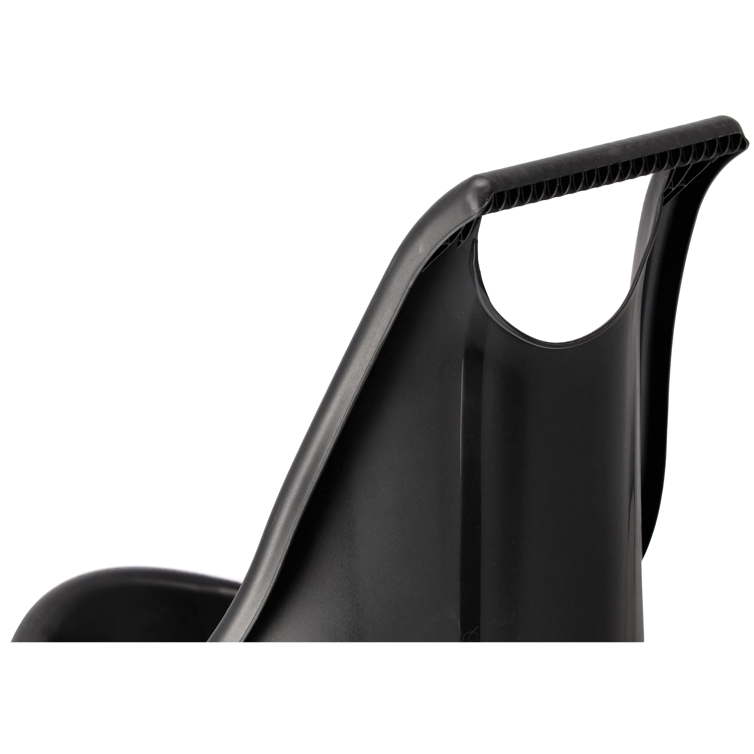 De hoge, ergonomisch gevormde handgreep zorgt voor een zekere grip en maakt kantelen bij het legen eenvoudig.