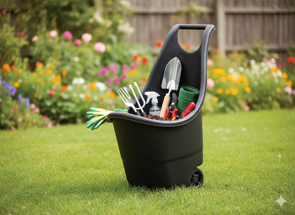 De duurzame kunststof is bestand tegen regen en zon, waardoor de kar zijn uiterlijk en functionaliteit het hele seizoen behoudt. Dankzij de verticale constructie en afgeronde rand is hij eenvoudig hanteerbaar en neemt hij weinig opslagruimte in.