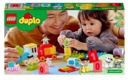 De populaire educatieve trein van LEGO DUPLO helpt kinderen de wereld van cijfers spelenderwijs te ontdekken. Kinderen kunnen de cijferstenen stapelen, verwijderen, ordenen en sorteren op de wagonnetjes en zo hun oog-handcoördinatie en logisch denken ontwikkelen.