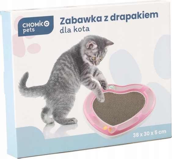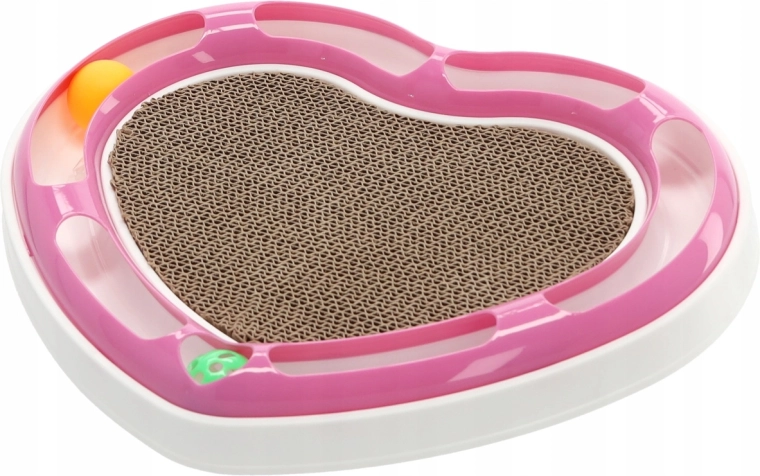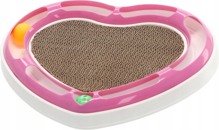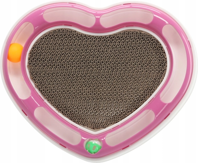 Dit hartvormige designstuk combineert twee van de favoriete kattenactiviteiten: balletjes najagen in de baan en krabben op het kartonnen oppervlak. De balletjes in de ronde rail dagen je kat uit om te achtervolgen en zachtjes te duwen met de pootjes, terwijl het midden van golfkarton een ideale plek biedt voor nagelverzorging.