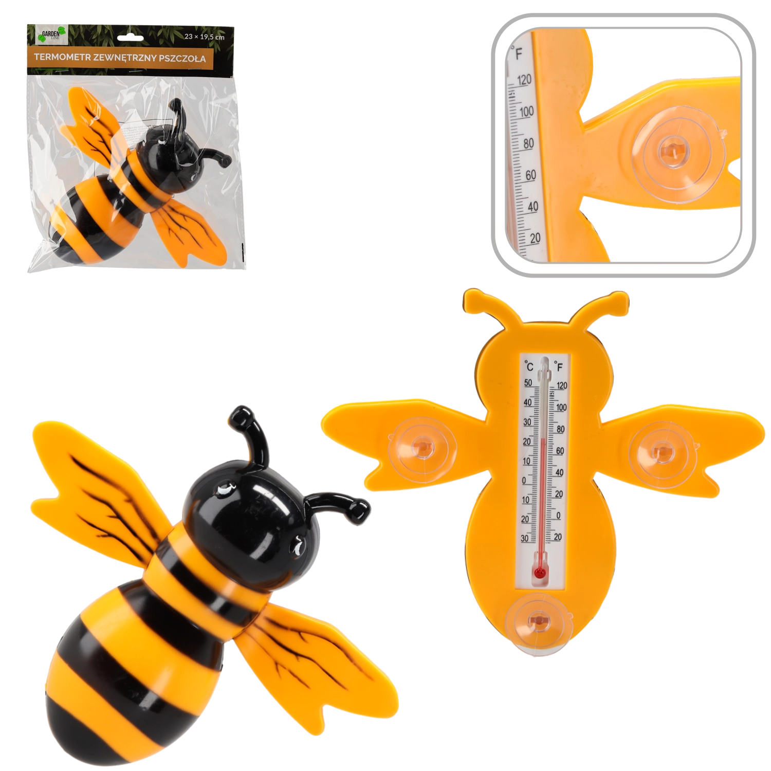Deze vrolijke thermometer in de vorm van een bij brengt een vleugje speels design aan je raam en toont tegelijk nauwkeurig de buitentemperatuur. De zuignappen zorgen voor snelle montage op gladde oppervlakken zoals ramen of tegels, en de thermometer kan zo buiten én binnen worden gebruikt.