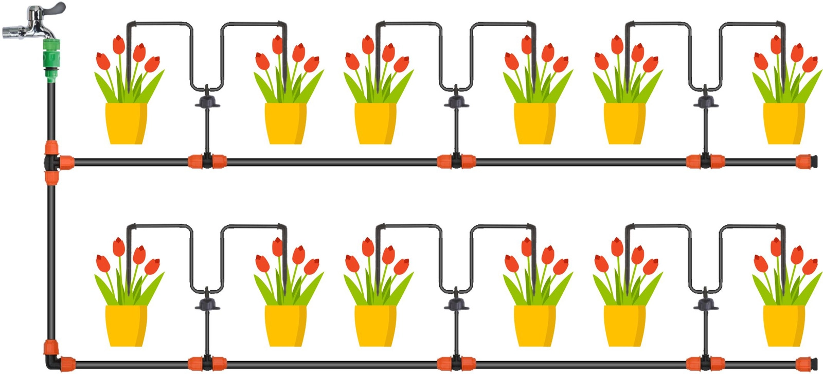- Druppelirrigatie voor tuin, perken en potten