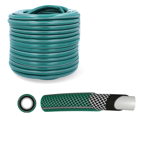 Het werktemperatuurbereik van -10 °C tot +60 °C en de werkdruk van 8 bar (barstdruk > 24 bar bij 20 °C) maken hem tot een uitstekende keuze voor het hele jaar door. Ideaal voor het besproeien van bloembedden, gazons, kassen en voor buitenschoonmaak. Het zeer flexibele PVC vergemakkelijkt hantering en opslag.