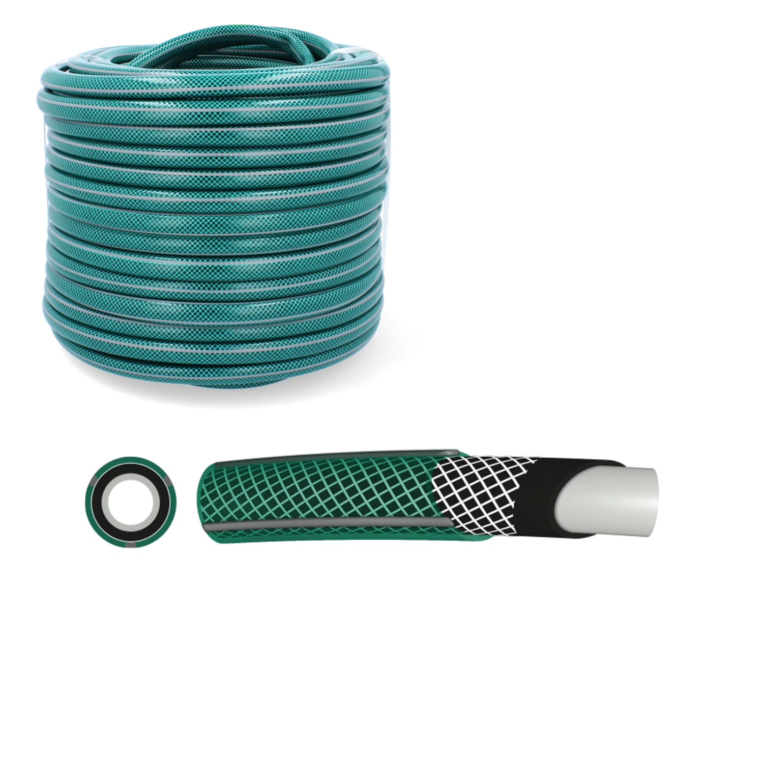 De meerlaagse wand met geweven raster verhoogt de sterkte van de slang, minimaliseert verdraaien en zorgt voor een stabiele waterdoorstroming, zelfs bij hogere druk.