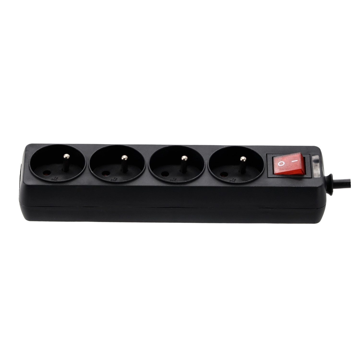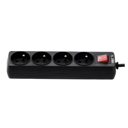 Zoekt u een betrouwbare stekkerdoos voor thuis of op kantoor? Deze zwarte verlenger met 4 Schuko-stopcontacten biedt een duurzame afwerking, een koperen geleider 3×1,0 mm² en een verlichte schakelaar waarmee u alle apparaten in één keer eenvoudig uitschakelt.