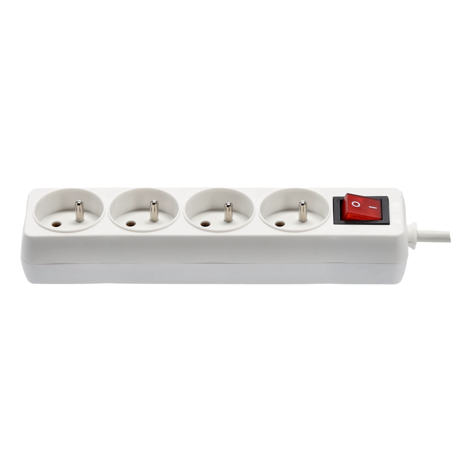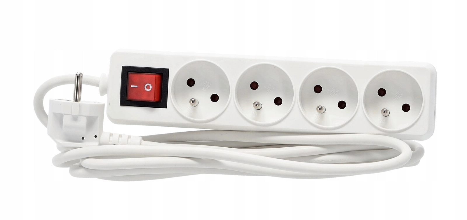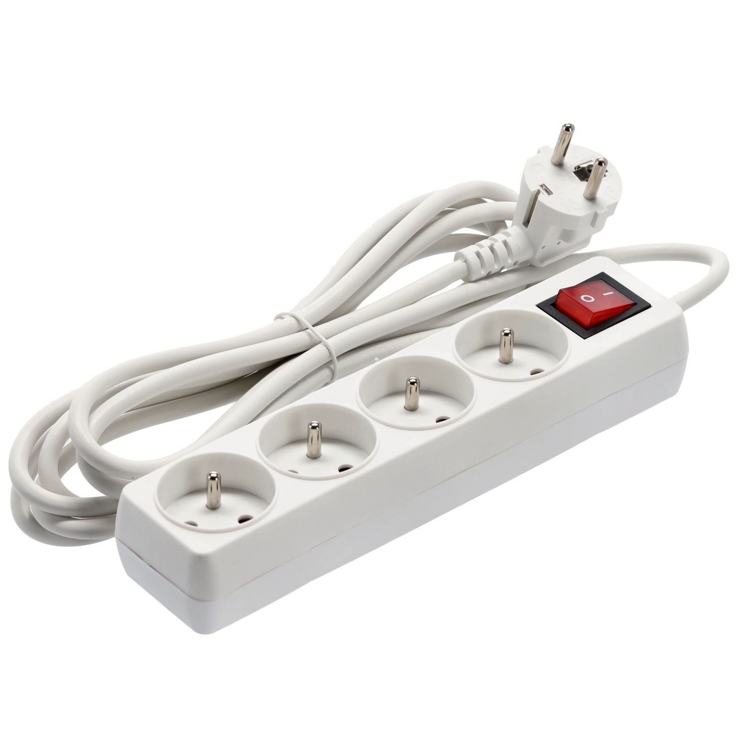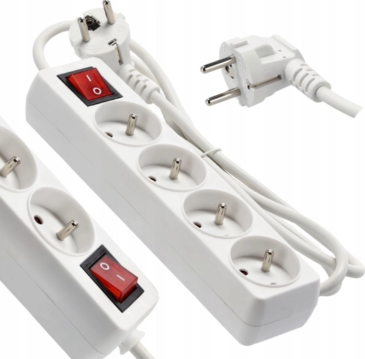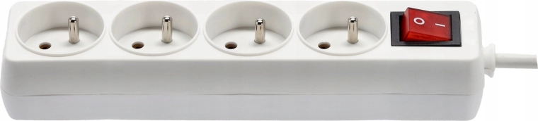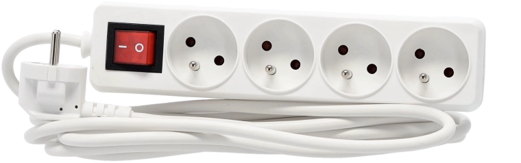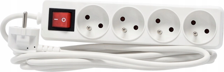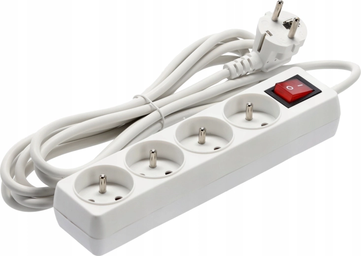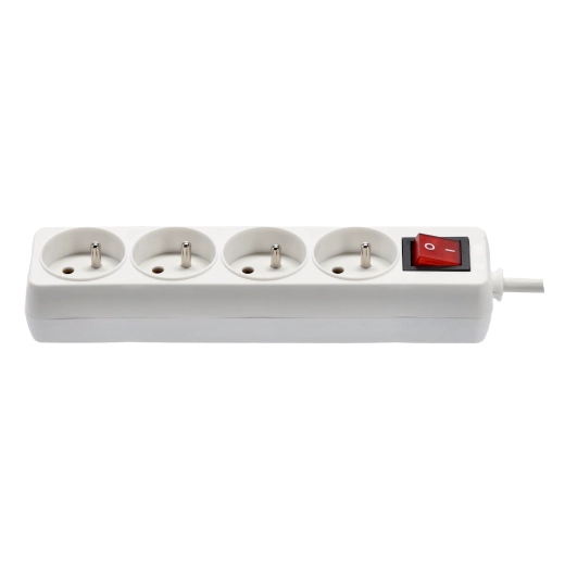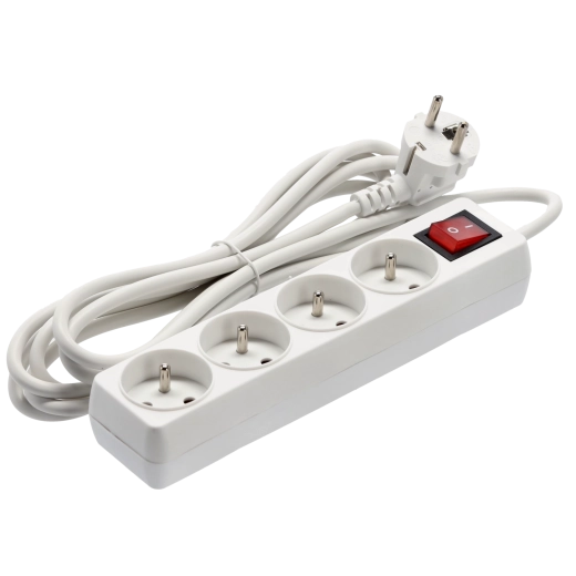 Praktische witte stekkerdoos met 4 stopcontacten, 3 m koperen kabel en verlichte hoofdschakelaar voor veilig en comfortabel beheer van de stroomvoorziening van meerdere apparaten tegelijk. Biedt een stevige constructie, kinderbeveiliging en betrouwbare specificaties voor zowel thuis als op kantoor.