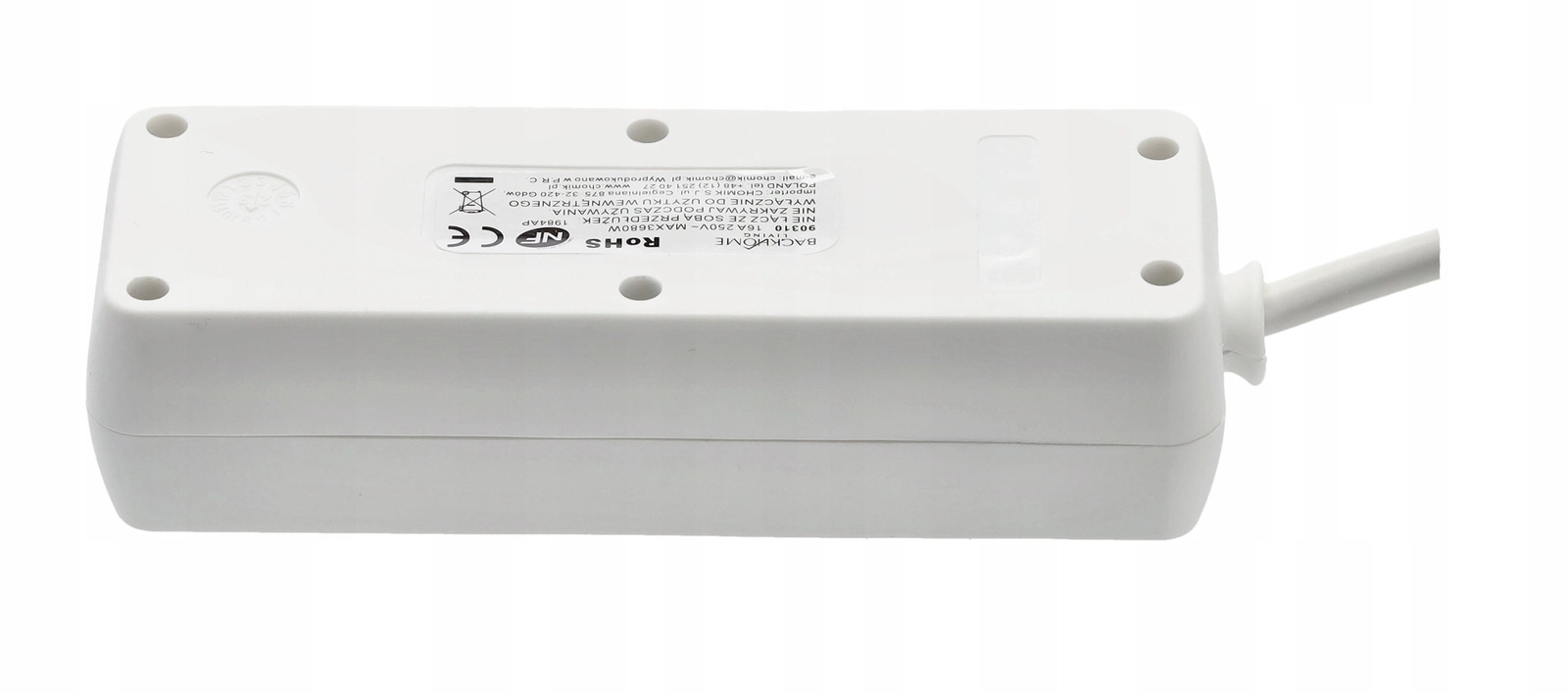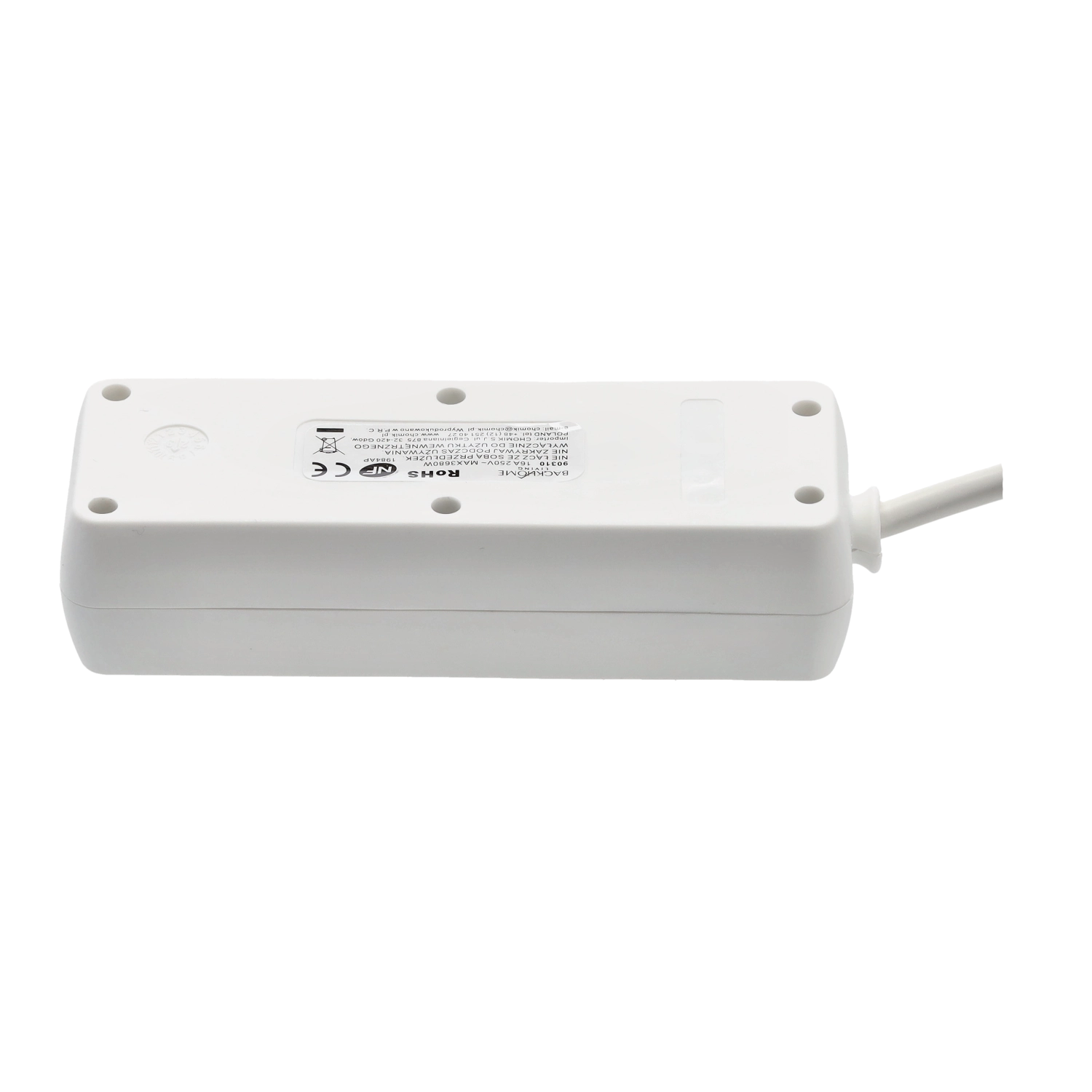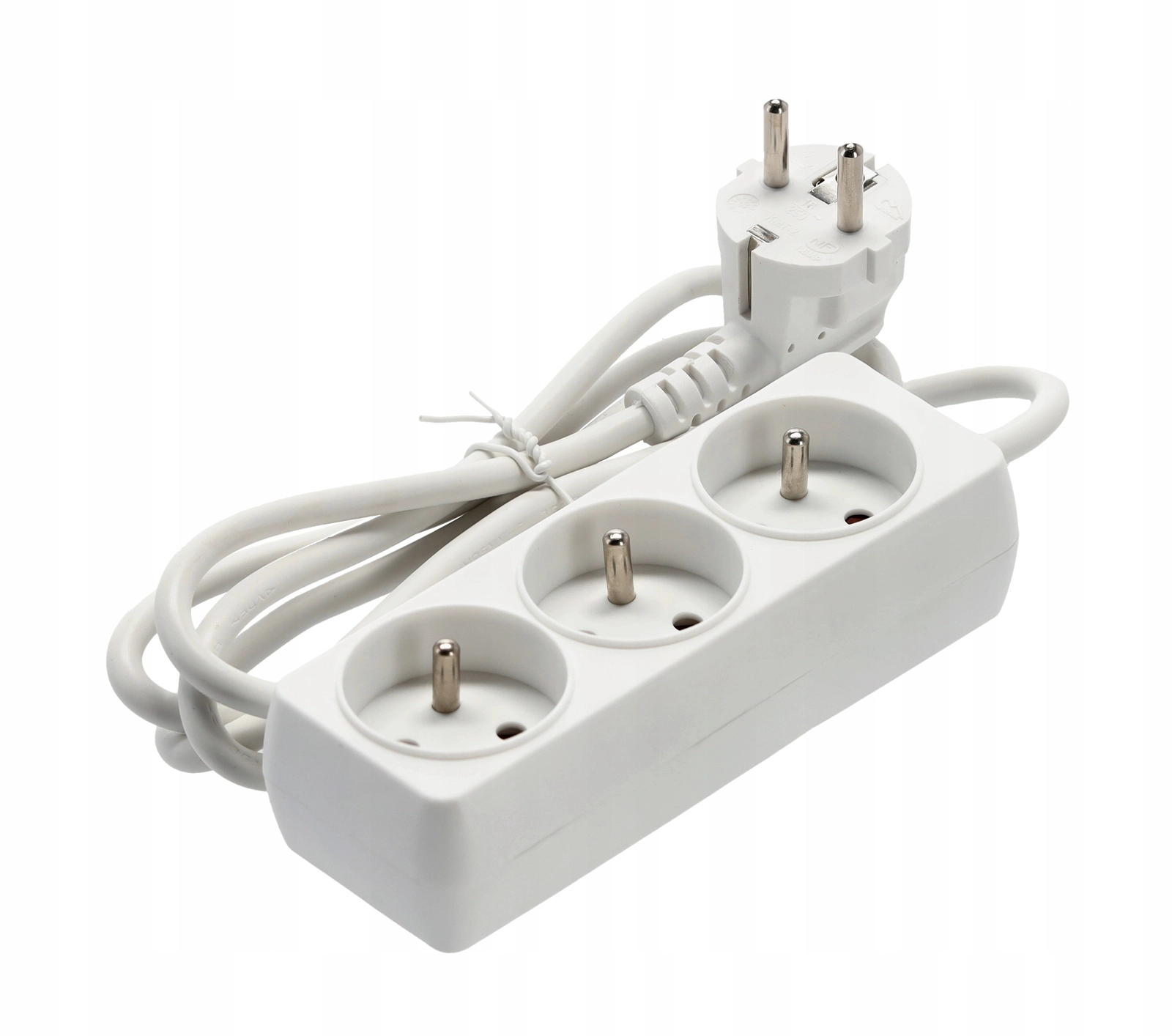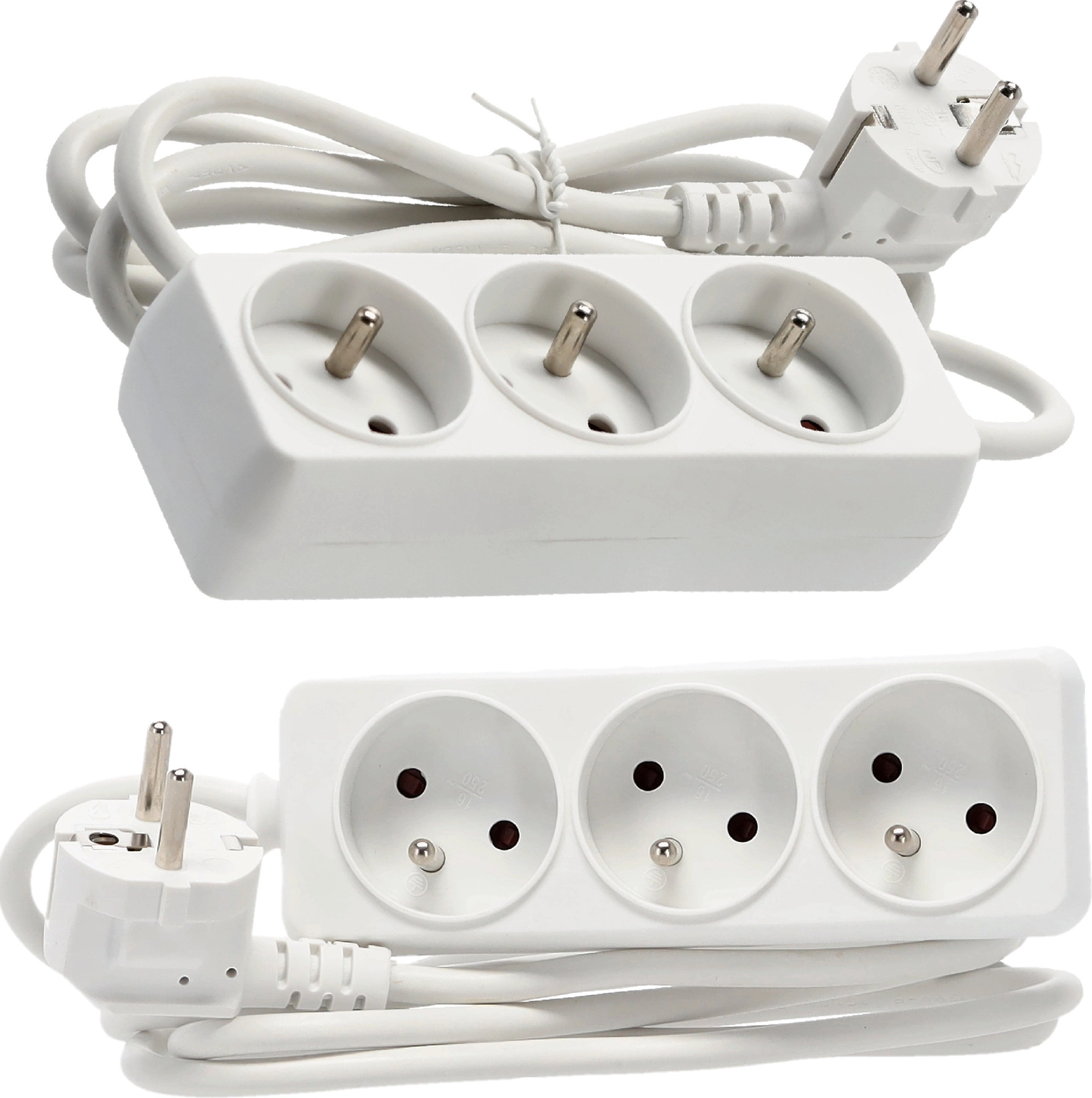 Praktische witte verlengdoos met 3 geaarde stopcontacten en een kabel van 1,5 m voor het gelijktijdig voeden van meerdere apparaten. Duurzame behuizing van kwaliteitskunststof, koperen geleider 3×1,0 mm² voor betrouwbare prestaties en een maximale belasting van tot 3680 W bij 250 V/16 A. Geschikt voor thuis en kantoor.