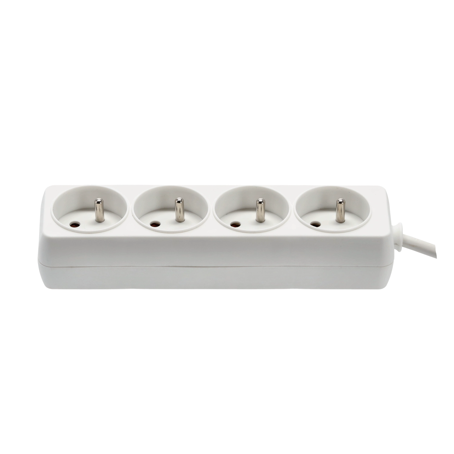 Vier geaarde stopcontacten in één stekkerdoos maken het mogelijk om meerdere apparaten tegelijk veilig aan te sluiten en van stroom te voorzien – ideaal voor kantoor en thuis.