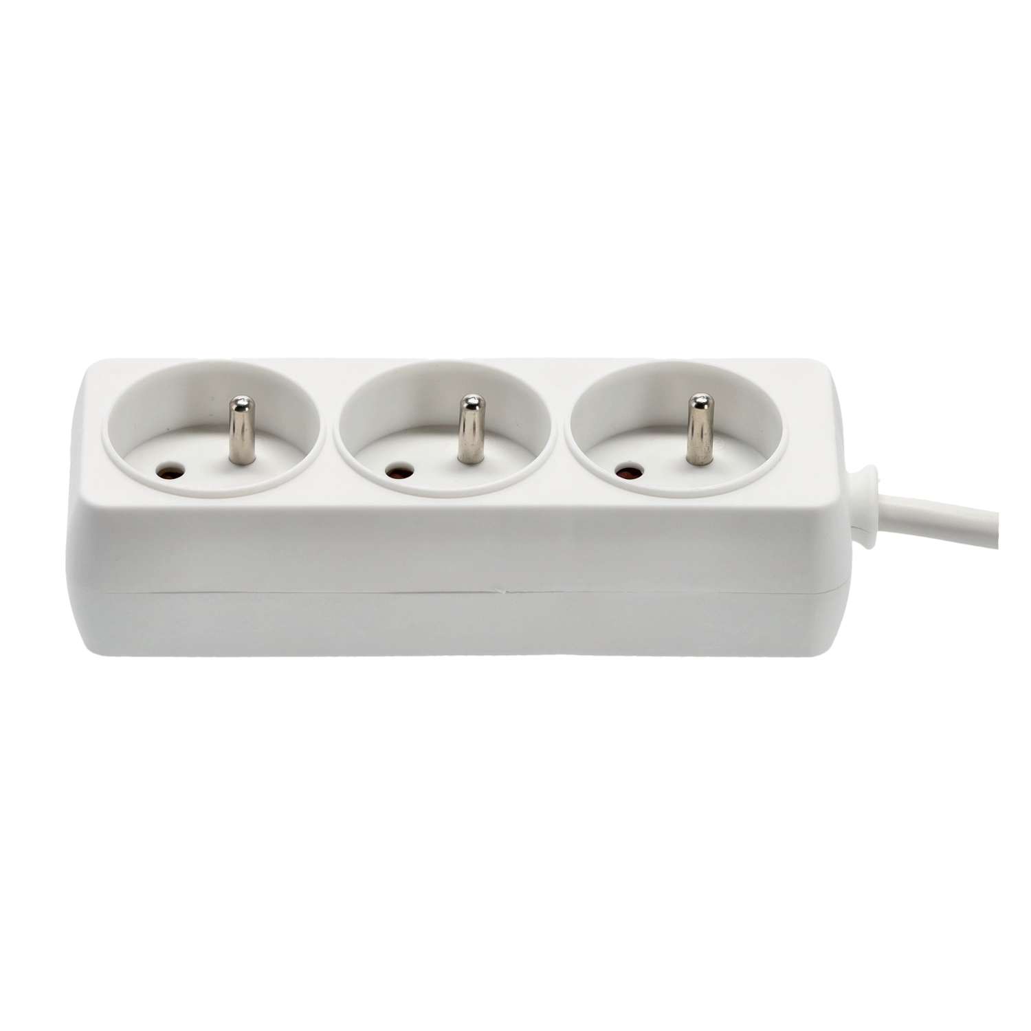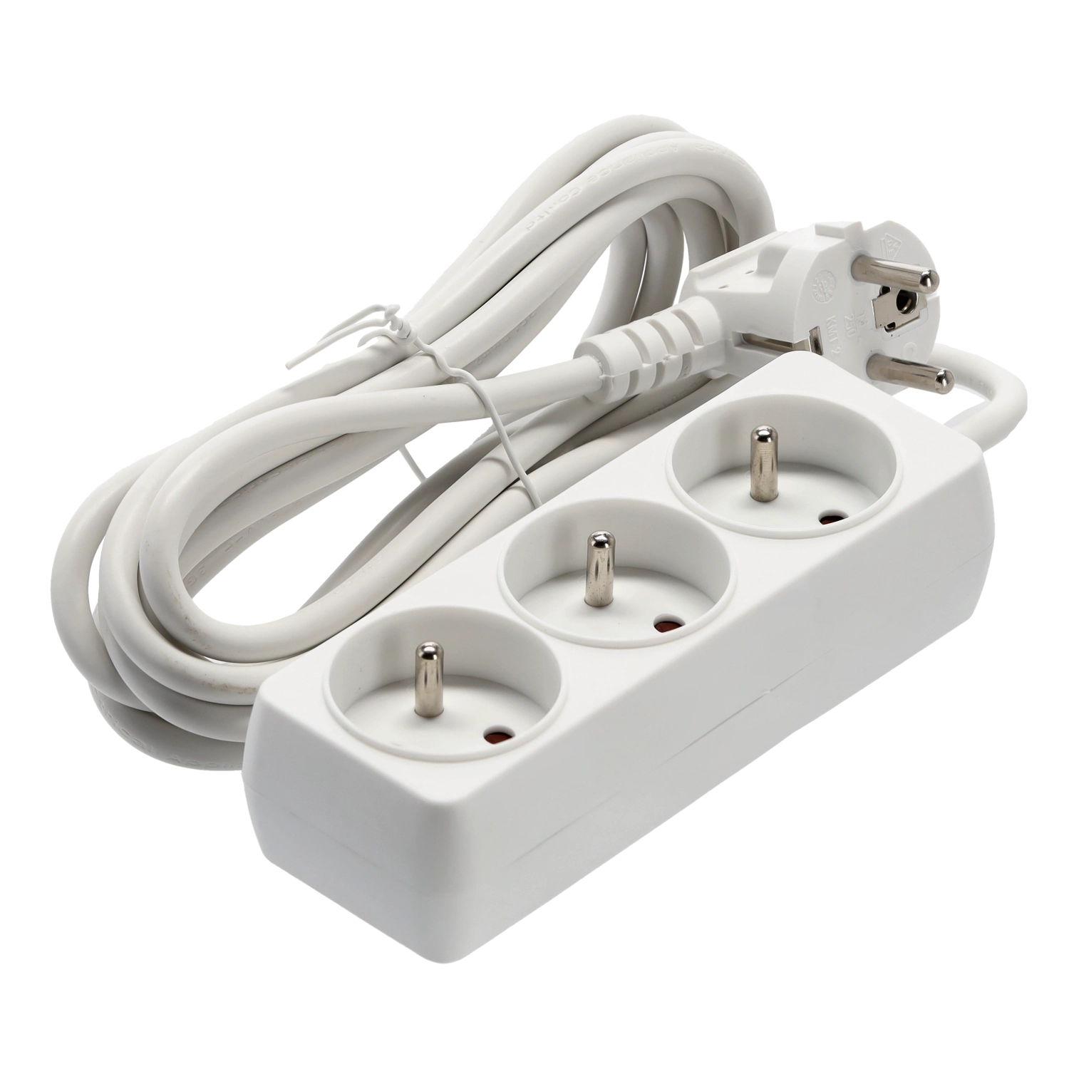 Deze witte stekkerdoos met drie stopcontacten vergroot de aansluitmogelijkheden van uw apparaten in één ruimte. De 3 meter lange koperen kabel biedt voldoende bereik, terwijl de geaarde Schuko-stopcontacten zorgen voor veilig gebruik met gangbare huishoudelijke apparaten.
