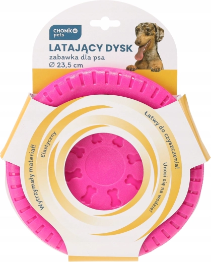 Lichte en duurzame vliegende schijf voor honden met een diameter van 23,5 cm, een uitstekende keuze voor actief apporteren en interactieve spellen met middelgrote en grote rassen. Dankzij de opvallende oranje kleur is hij goed zichtbaar op het gras en in de lucht, vliegt stabiel en is makkelijk te vangen. Het polyethyleen materiaal is vriendelijk voor tanden en tandvlees en de schijf drijft op water, zodat je ook bij het meer of in het zwembad kunt spelen.