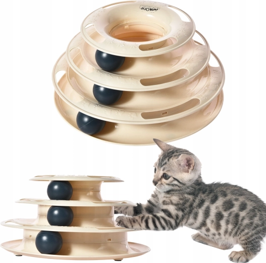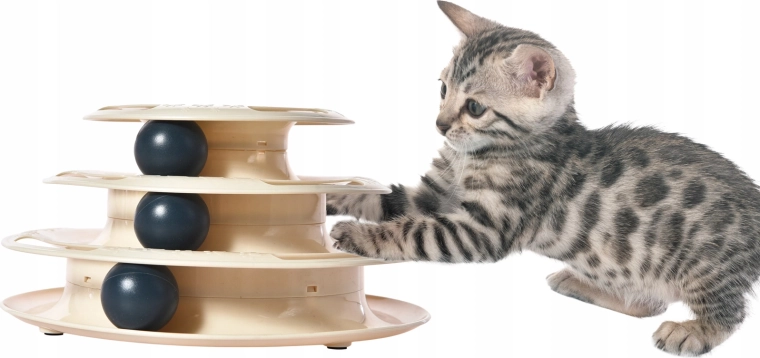 Verwen je kat met slimme entertainment die urenlang bezighoudt. De toren met drie niveaus en balletjes draait bij elke tik van de poot en motiveert je kat om verder te jagen. Dankzij de vloeiende beweging van de balletjes in de open banen stimuleert het speeltje de natuurlijke instincten en ondersteunt het dagelijkse beweging.