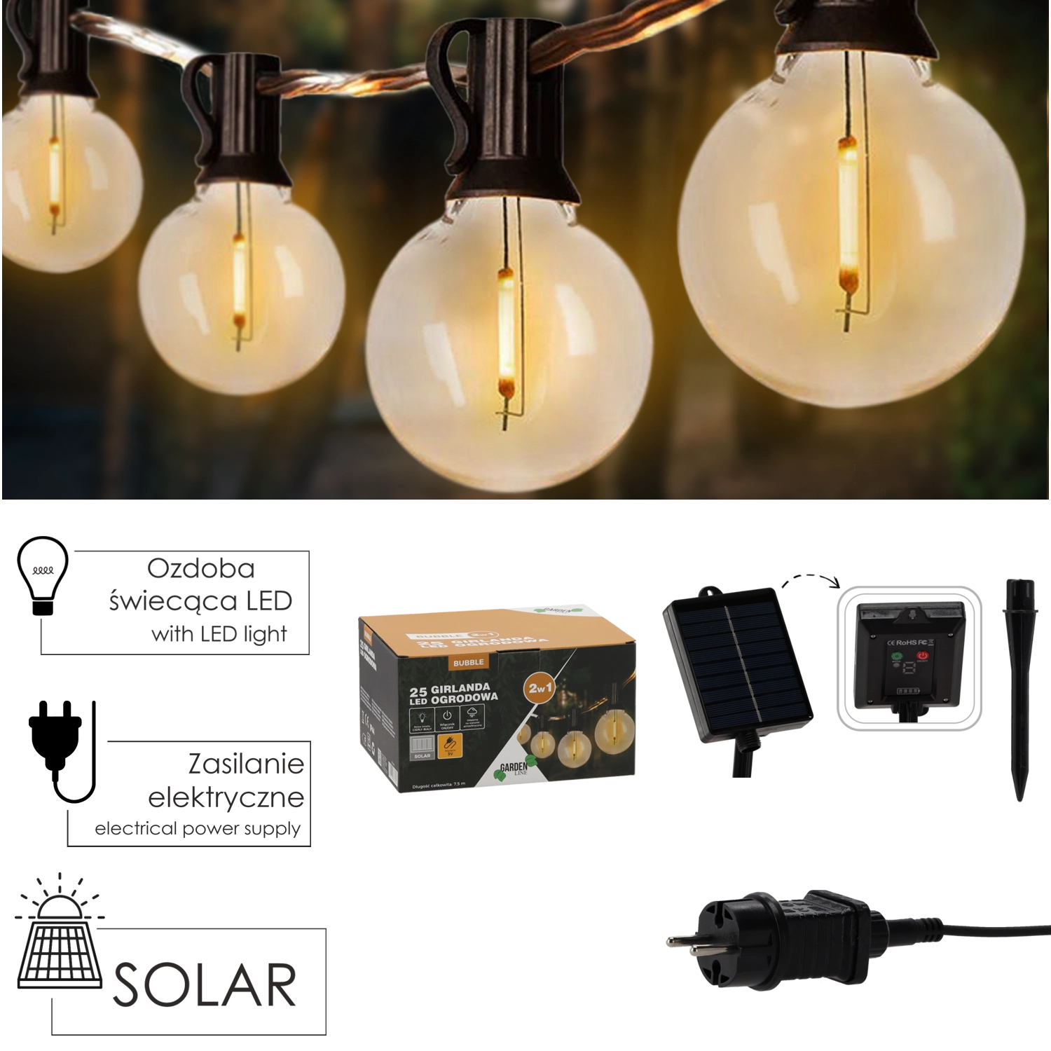 - Buitenlichtslinger 2-in-1 (zonne-energie / laagspanning 3 V)