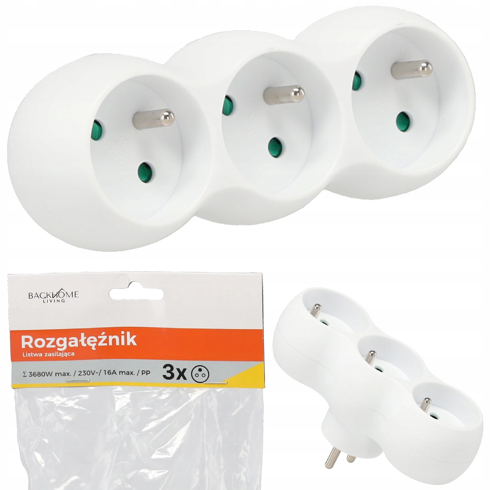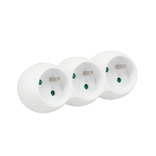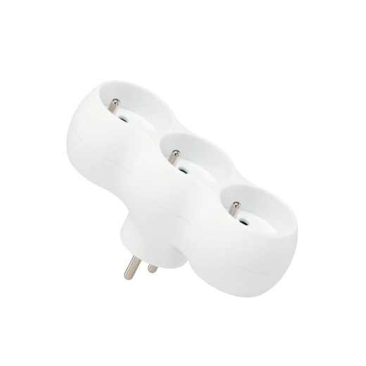 Praktische witte stekkerdoos met drie Franse (Schuko) stopcontacten voor dagelijks gebruik in huis en op kantoor. Biedt 3 stopcontacten 230 V, max. vermogen 3680 W en kindveilige afdekking. Dankzij het slijtvaste PP-materiaal en het elegante witte design past hij in ieder interieur.
