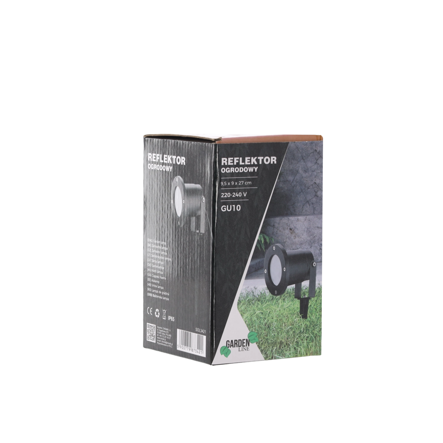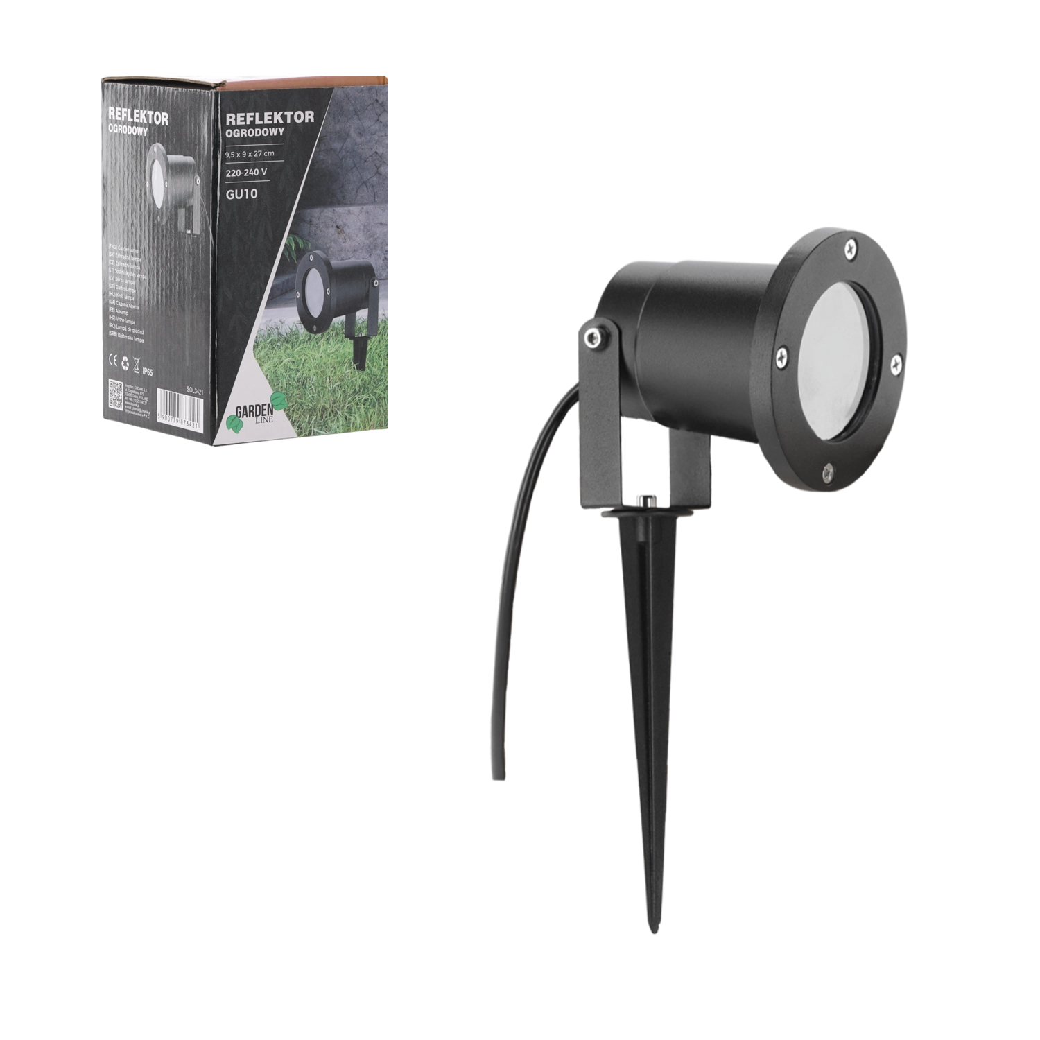 De spot is ontworpen voor 220–240 V en is dankzij de waterdichte uitvoering geschikt voor langdurig buitengebruik. De compacte afmetingen van 9,5 × 9 × 27 cm maken installatie en plaatsing in de tuin of op het terras eenvoudig.