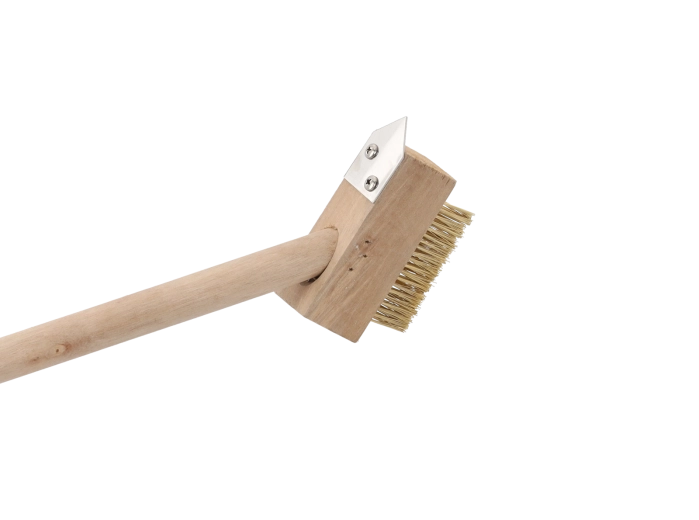 Houd paden, terrassen en trottoirs snel en moeiteloos vrij van mos en onkruid. Deze borstel met sterke metalen haren en een driehoekige stalen schraper dringt diep door in de voegen en maakt vuil en wortels nauwkeurig los en verwijdert ze. Dankzij de lange houten steel van 120 cm werkt u comfortabel rechtop.