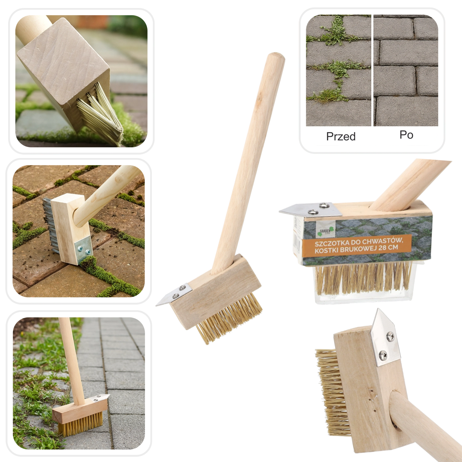 De massieve houten handgreep biedt een zekere grip en een lange levensduur. De borstel is ideaal voor regelmatig onderhoud rondom het huis – van terrassen en trottoirs tot opritten en tuinpaadjes. Een praktische hulp die het werk versnelt en oppervlakken schoon achterlaat.