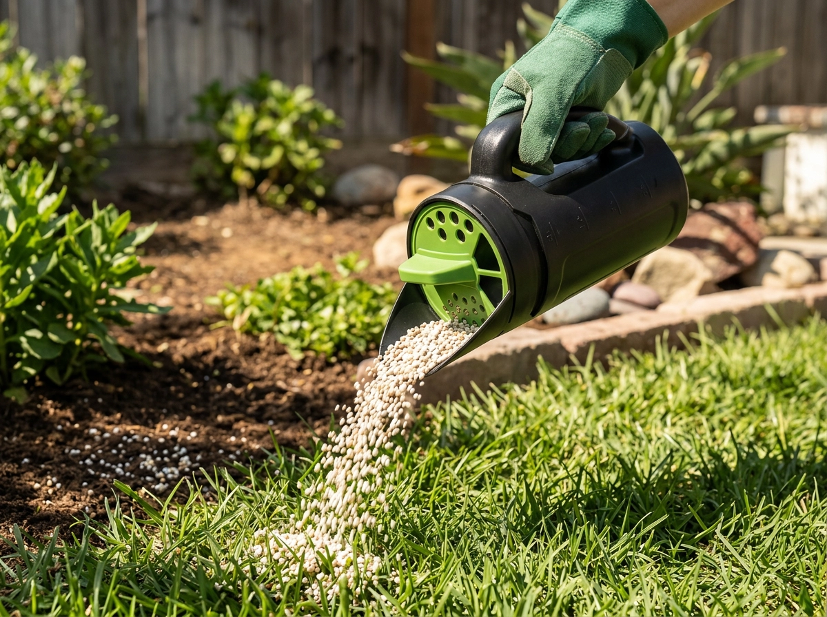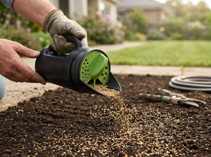Eén tool voor zaaien en bemesten in het seizoen en voor veilig winterstrooien met zout of zand op gladde oppervlakken.